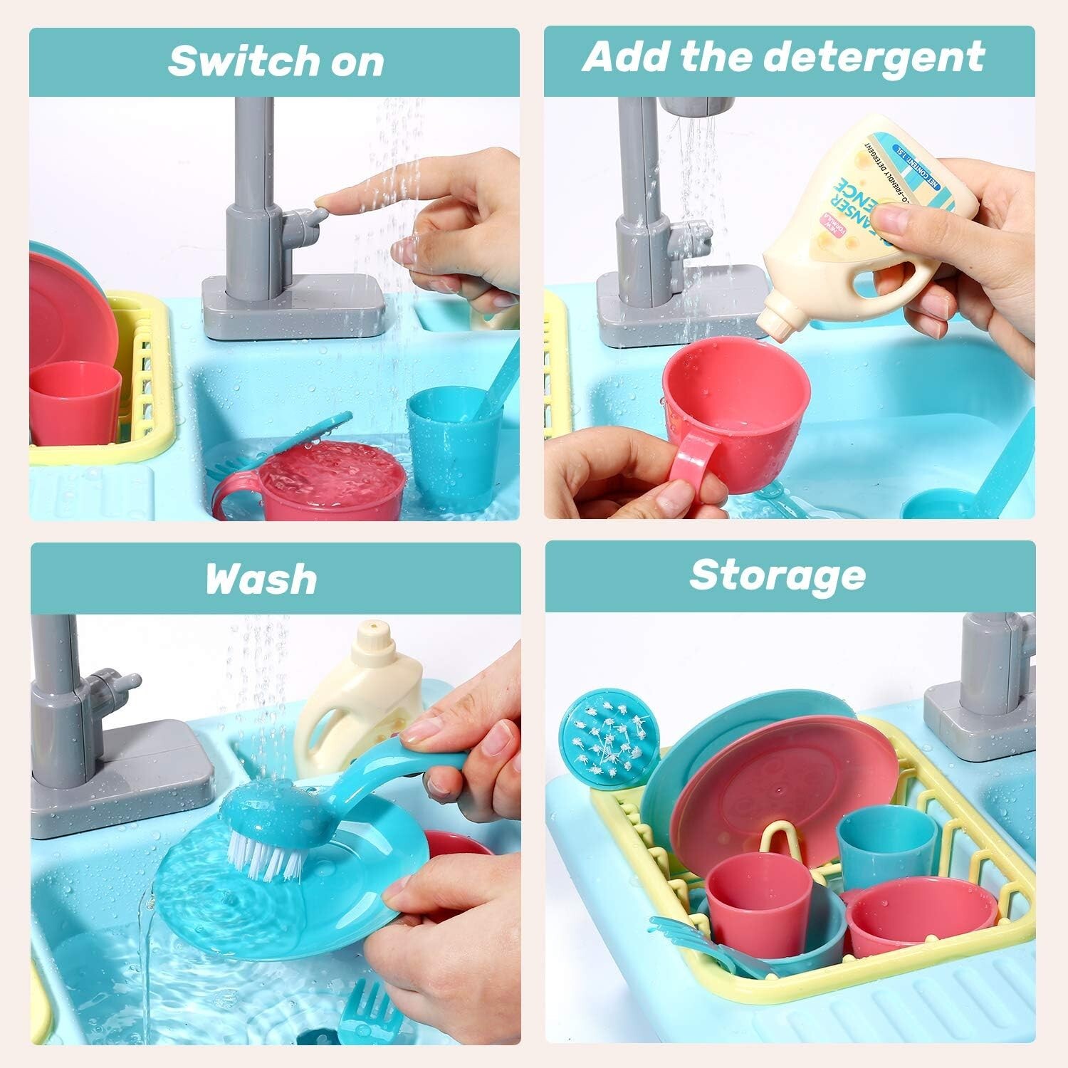 Особенности: With running Water, Color changing, Automatic water cycle system, Encourages hand washing, Smooth edges, Child-friendly, Pretend role play, Role-playing games, Enhances color recognition, Improves hand-eye coordination