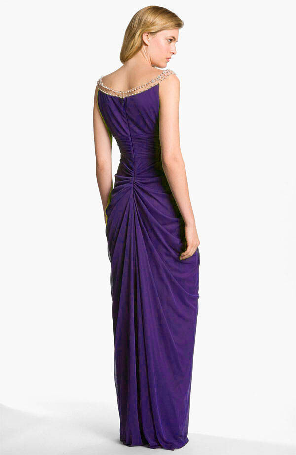 Adrianna Papell Embellished Draped Mesh Gown Sz 10 Amethyst