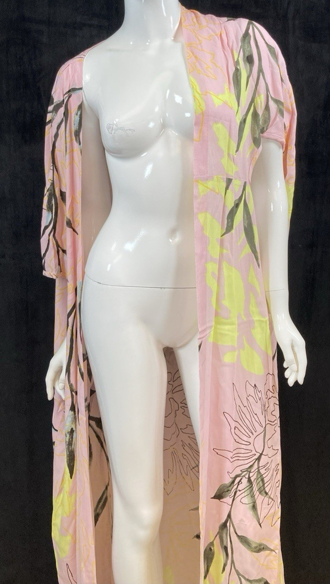 NWT Bel Kazan Anthropologie Multicolor Pink Print Open Cover Up/Robe, One Size