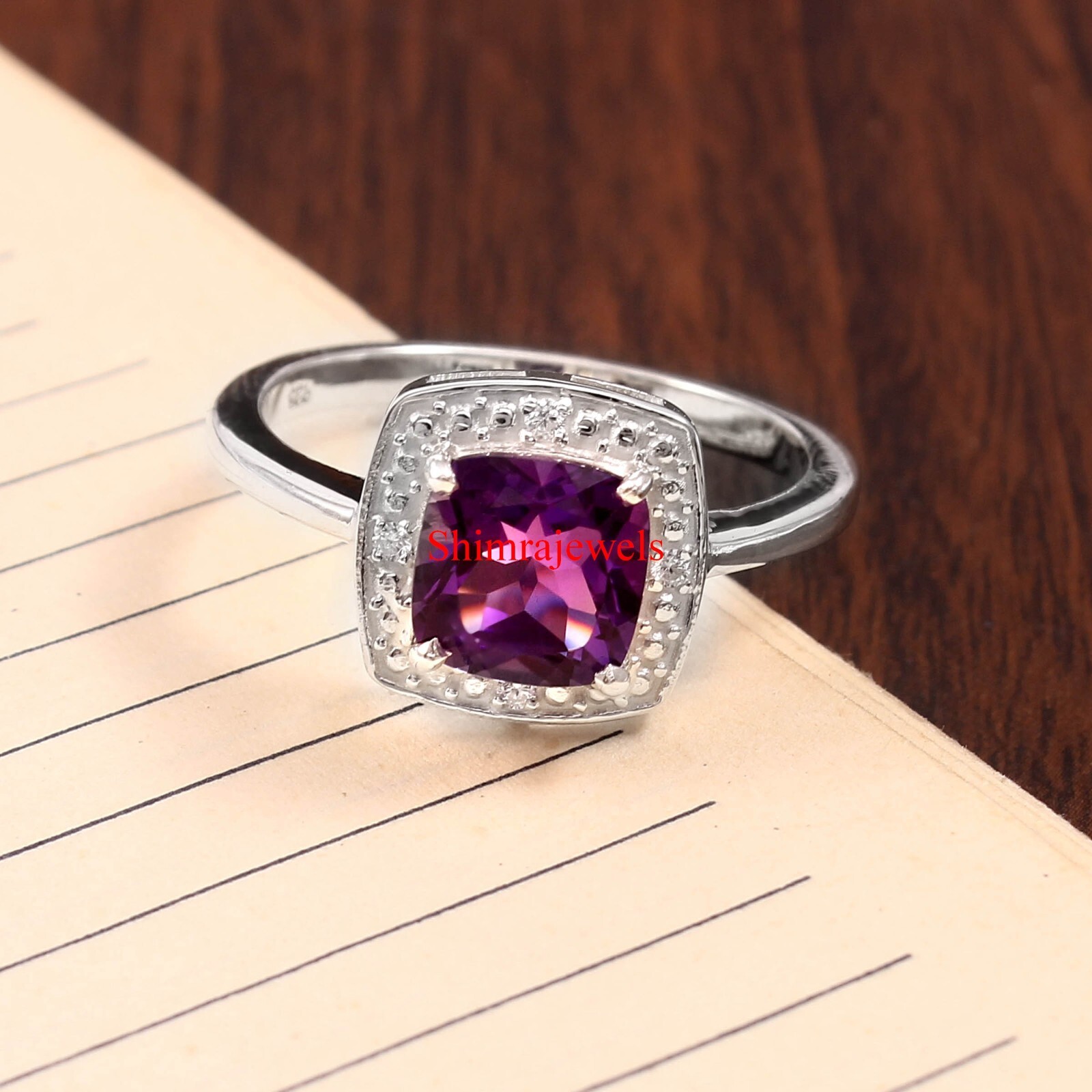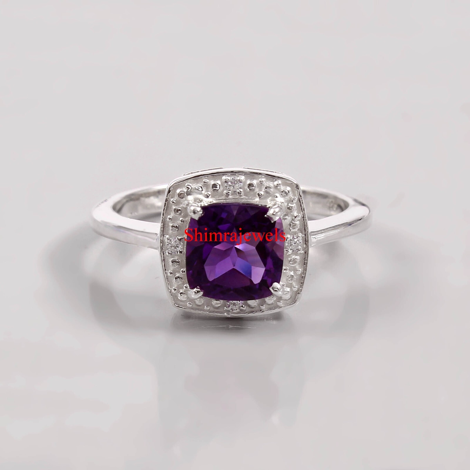 как выглядит Natural Amethyst Gemstone With 18K Gold Plated Silver Womens Ring 759 фото