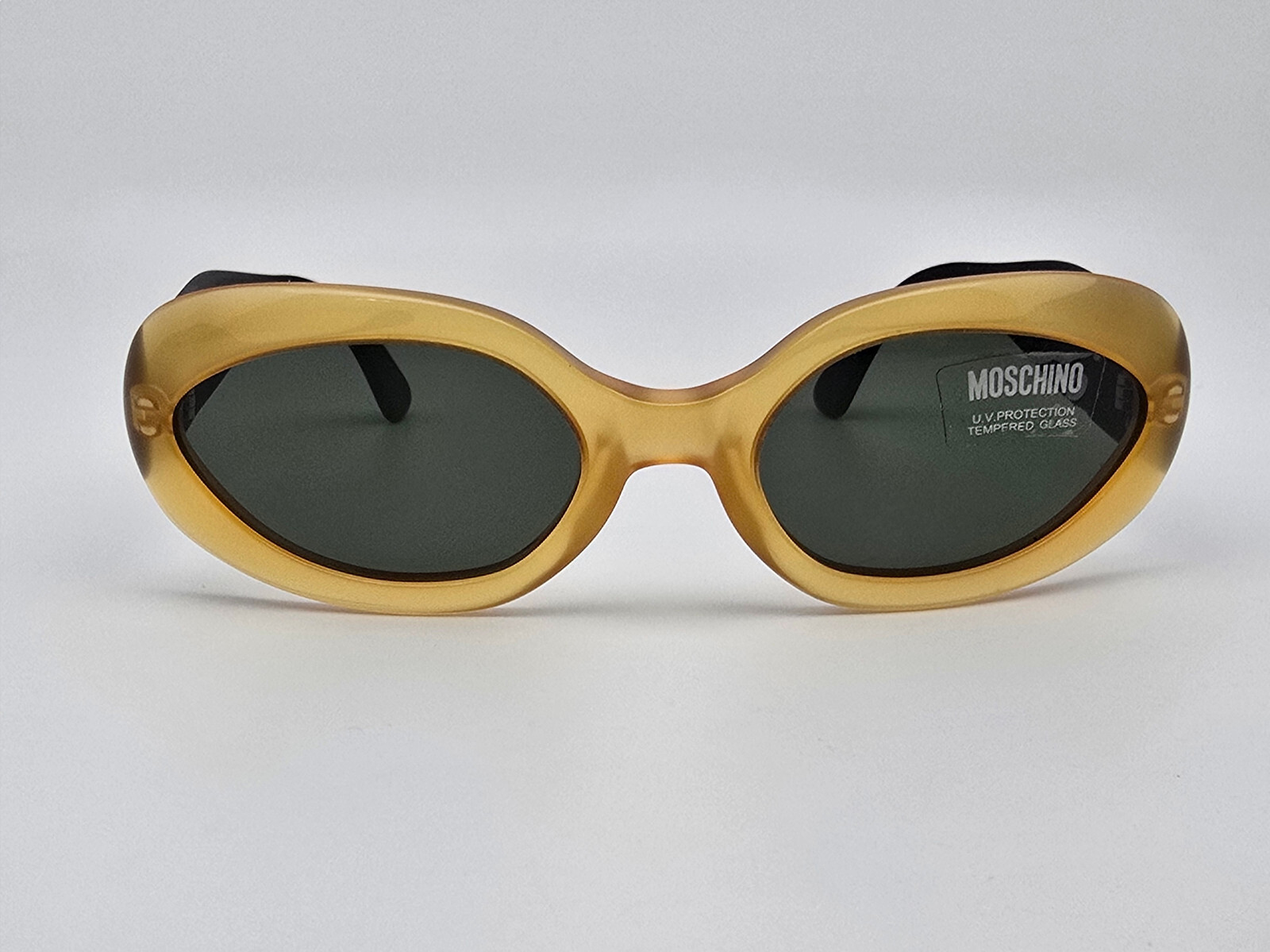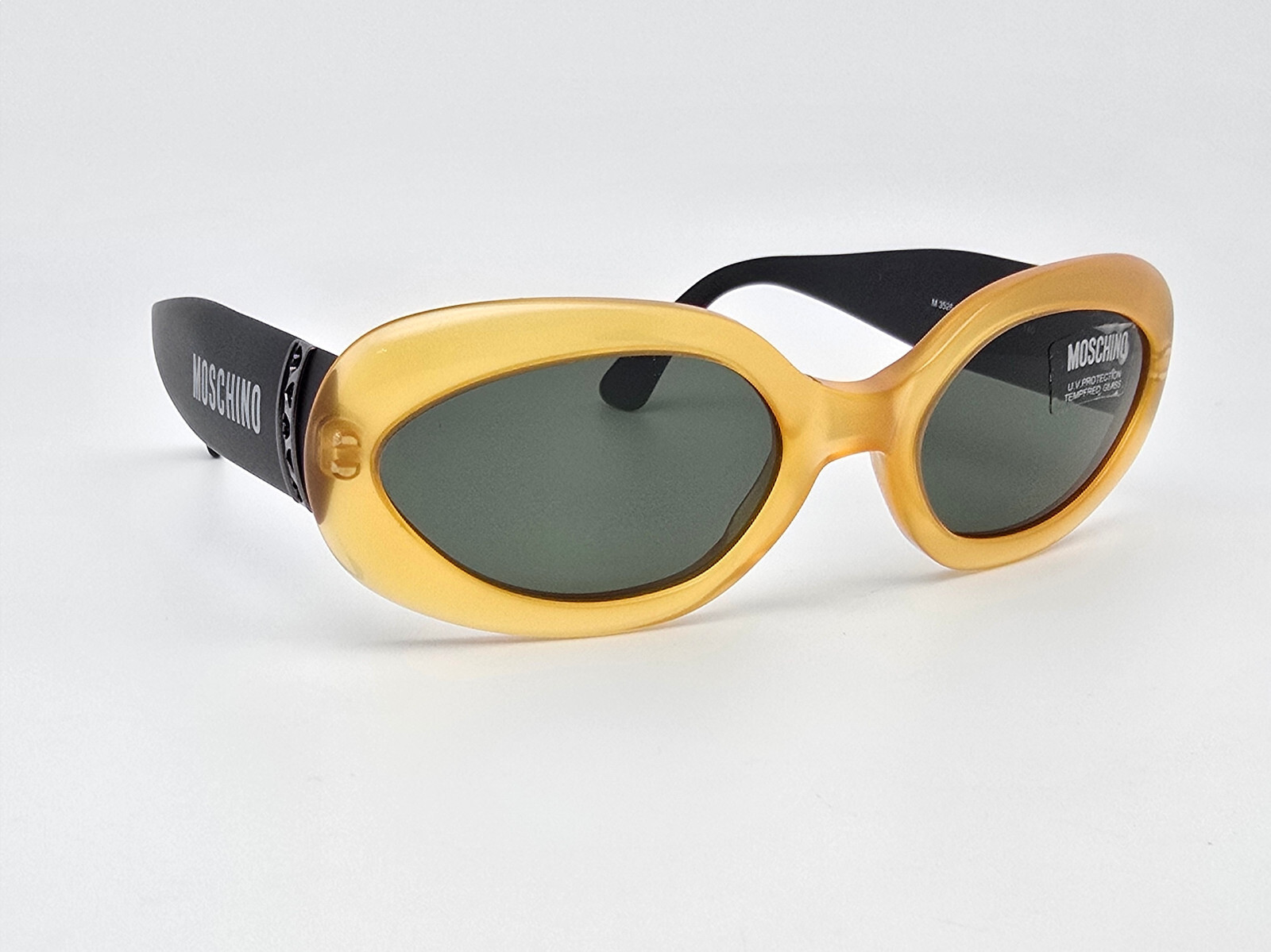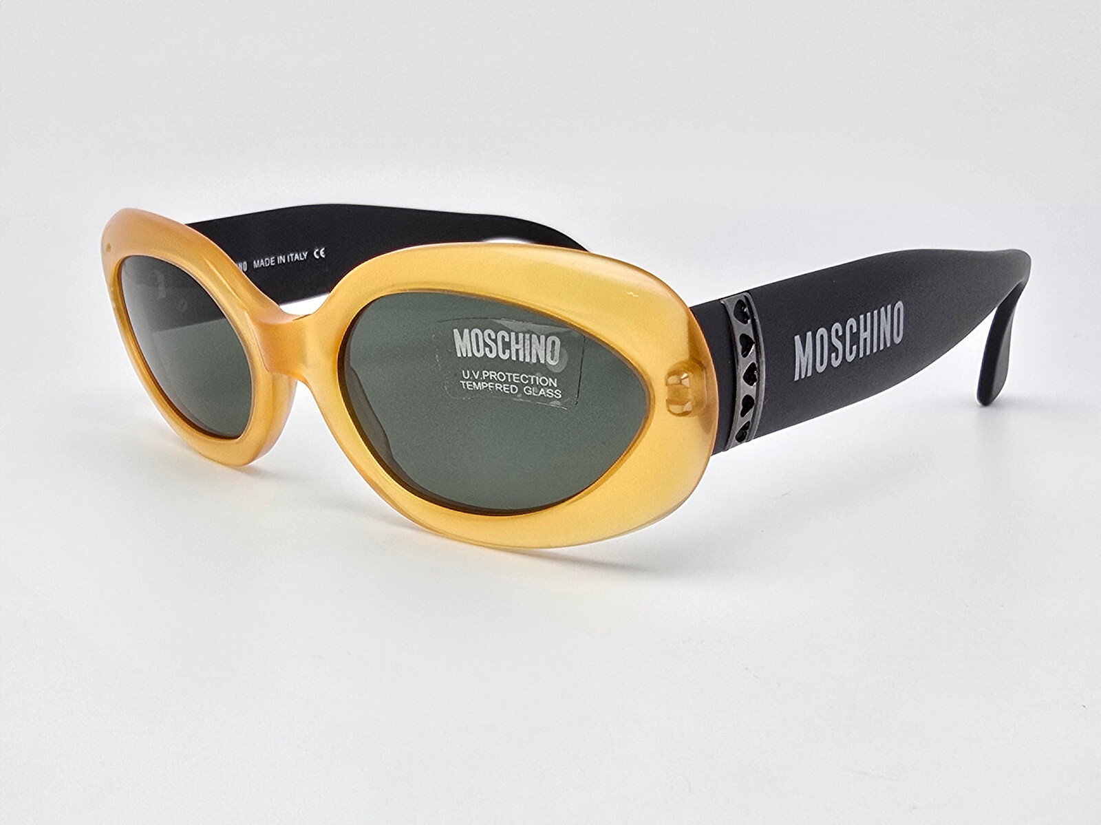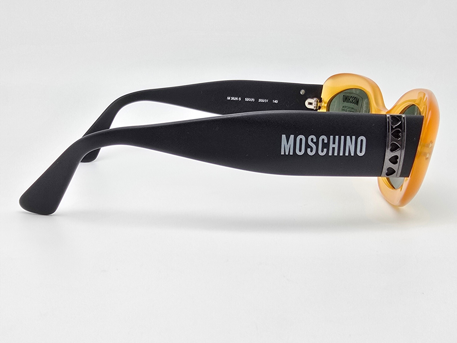 Moschino M3526-S 200/31 Yellow Hearts Frame G-15 Green Lens Sunglasses w/ Case