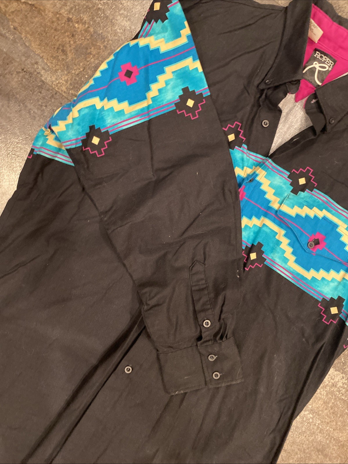 Men s vintage Roper western shirt blue Aztec black button-down Western Size XL