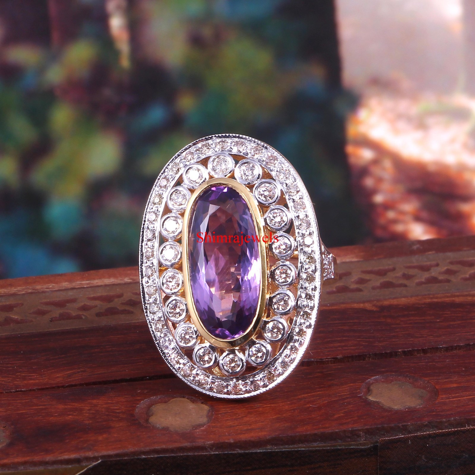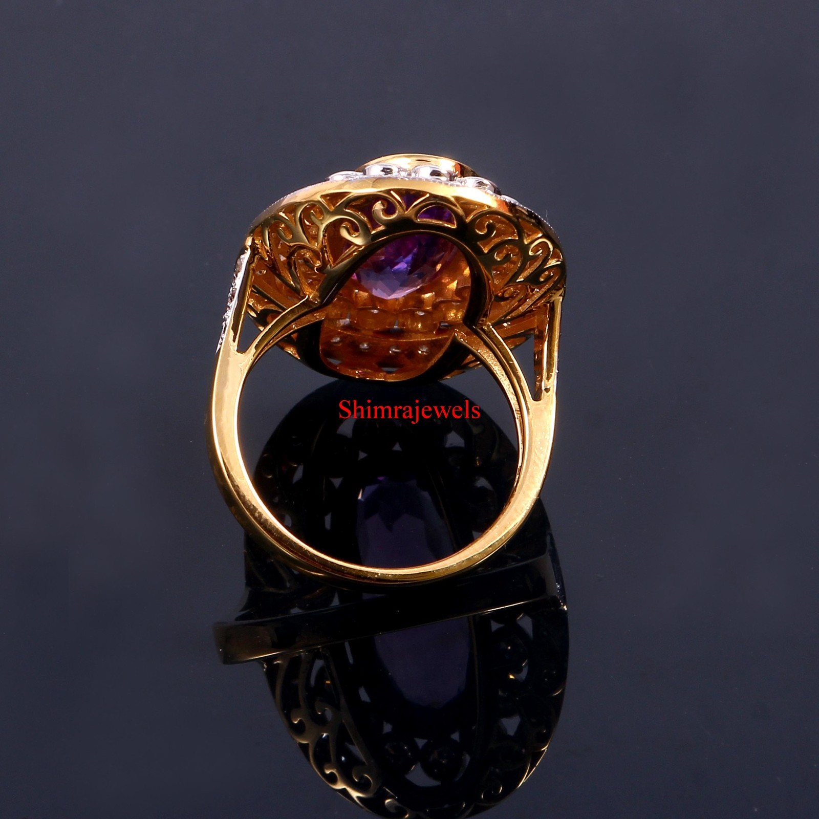 Natural Amethyst Gemstone With 18k Gold Plated Silver Women's Ring 104