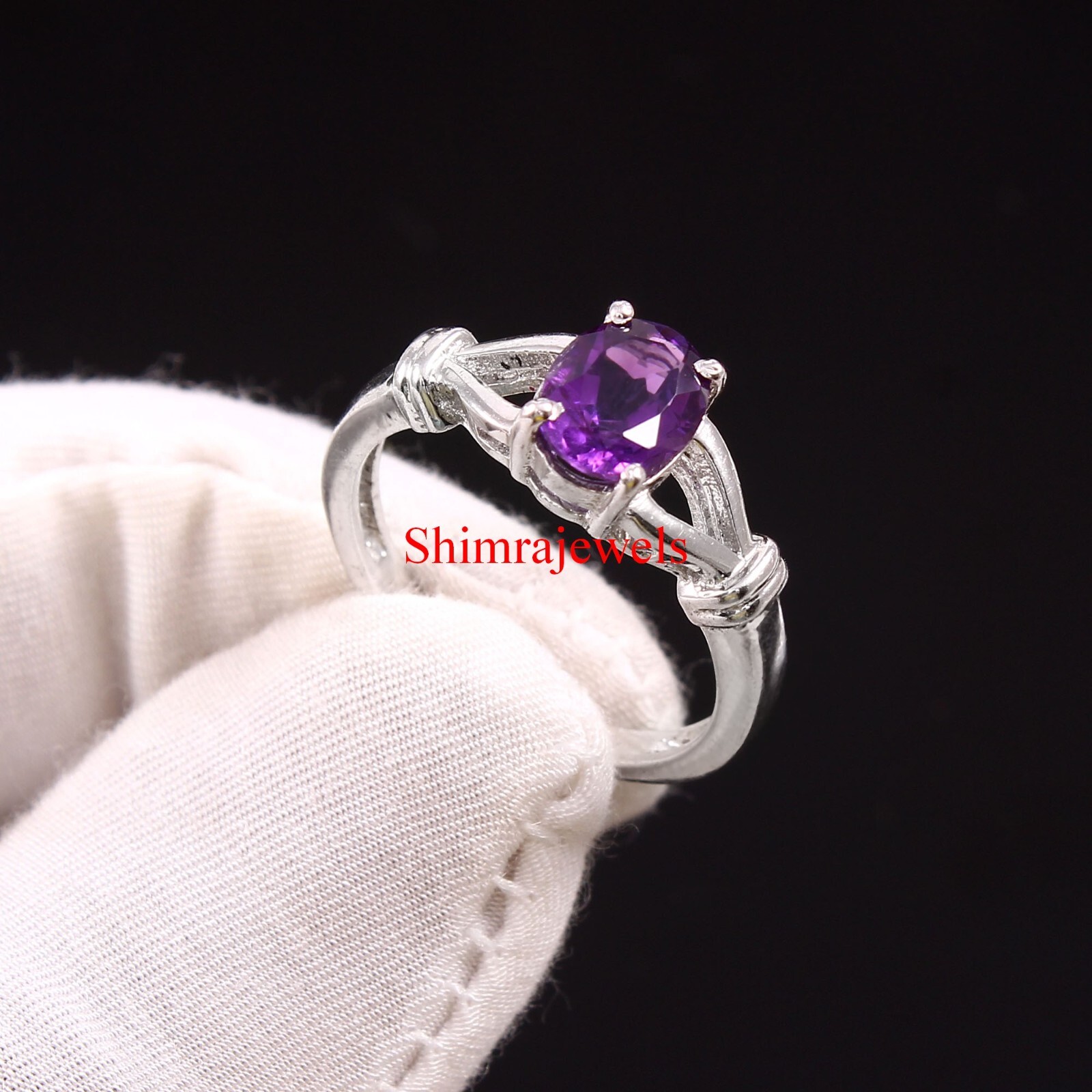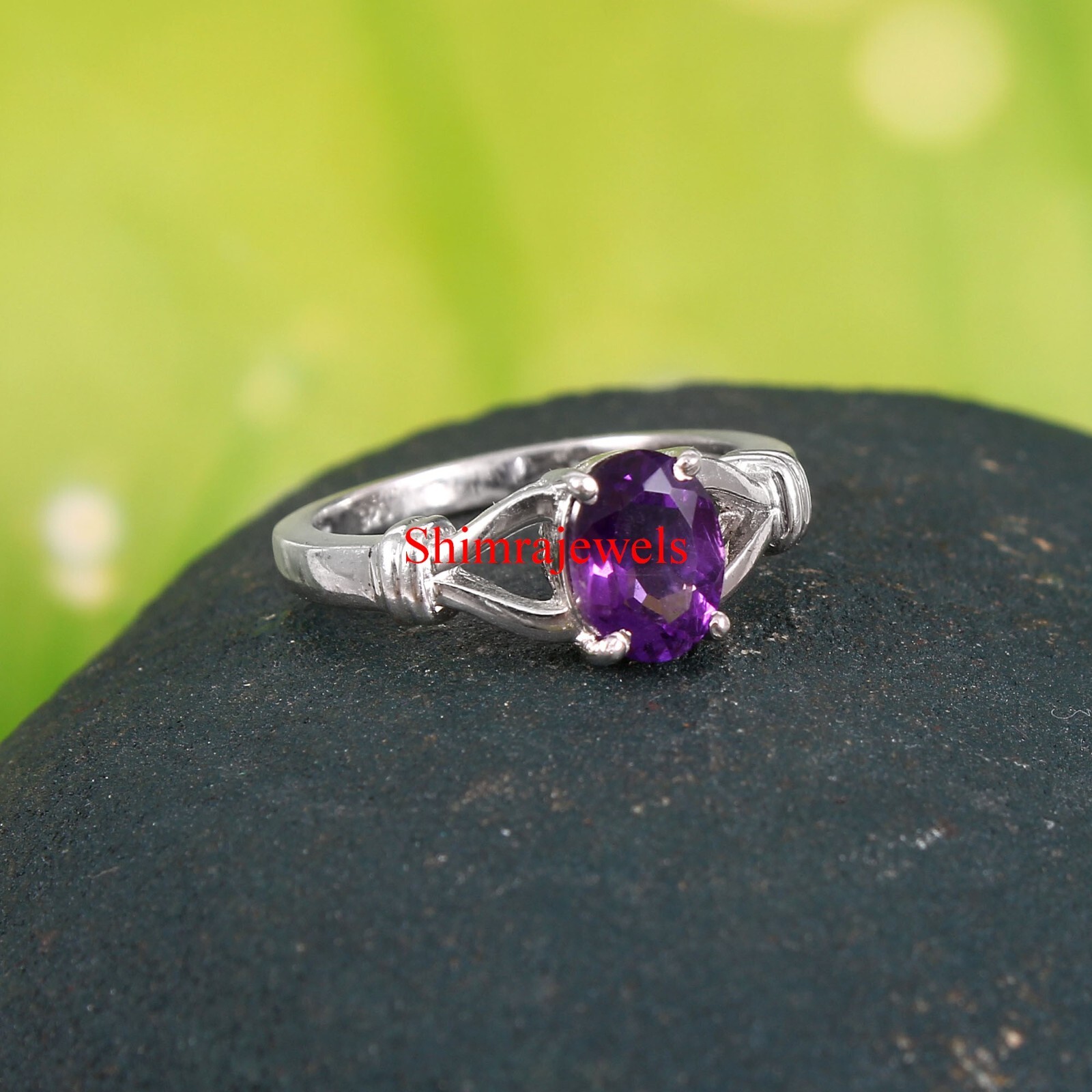 Natural Amethyst Gemstone With 18K White Gold Plated Silver Women's Ring 634