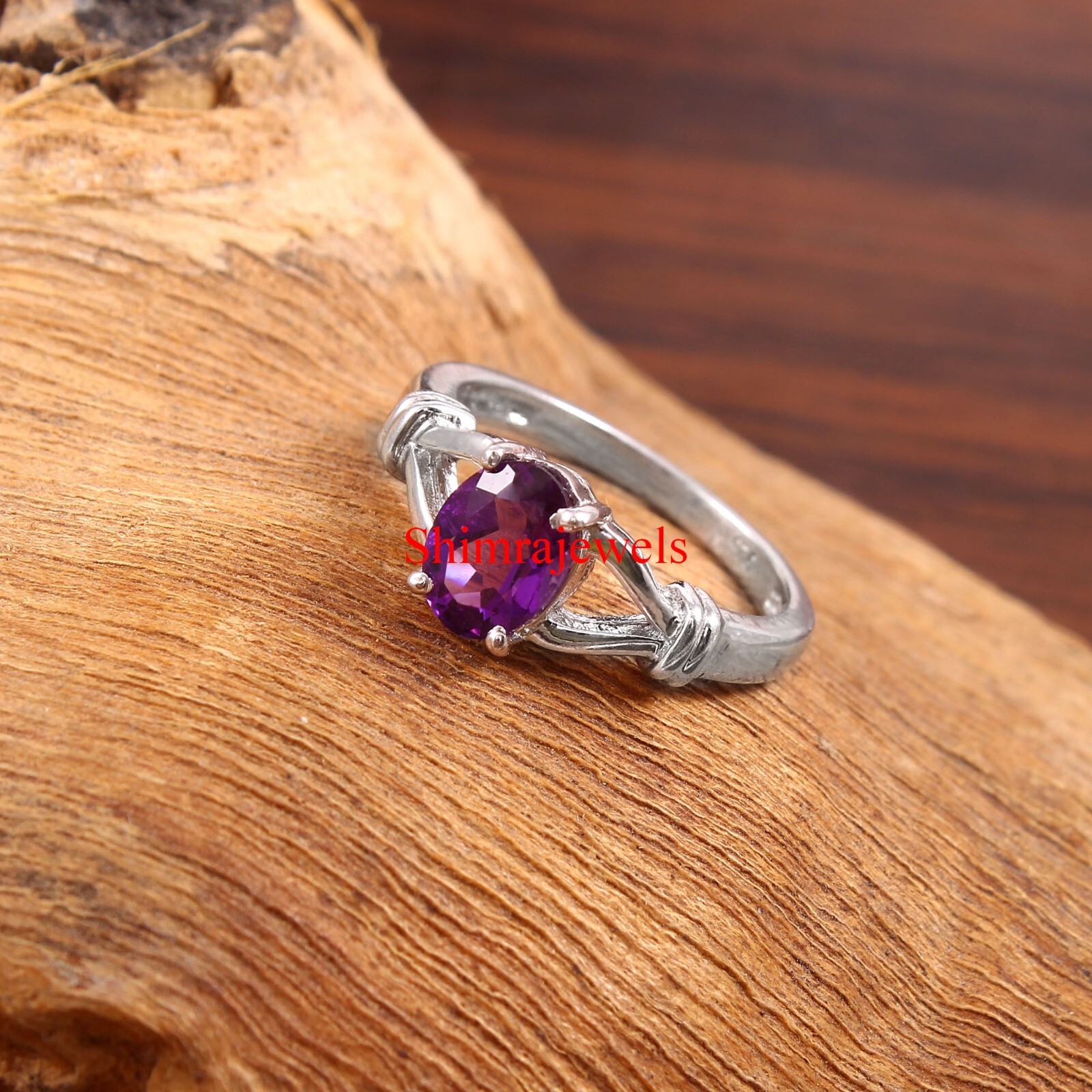 как выглядит Natural Amethyst Gemstone With 18K White Gold Plated Silver Womens Ring 634 фото