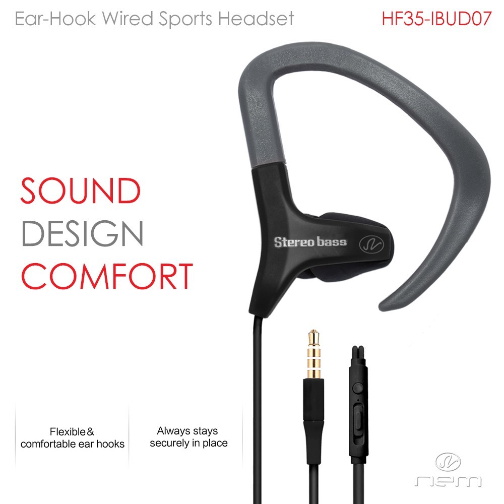 Universal Sweat-Proof Sport Wired Stereo Earphones Over-Ear Hook w/ Mic Workout