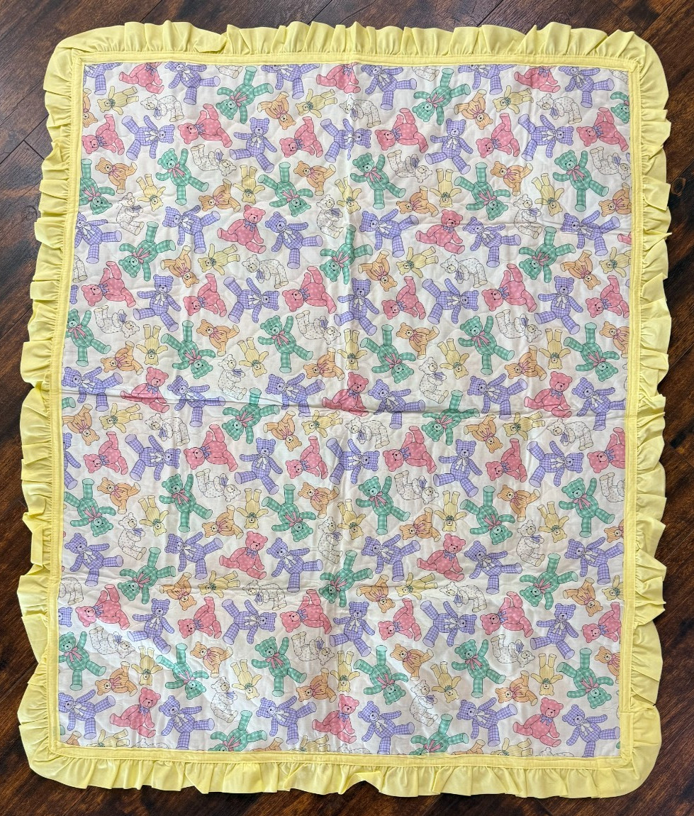 Baby Girl Blanket Handmade 40x48 Ruffle Vip Teddy Bear Cranston Print Quilt