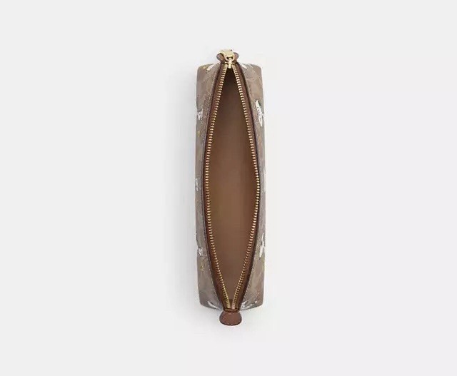 Coach Peanuts Snoopy Print Tan Signature Canvas Pencil Case Pouch NEW