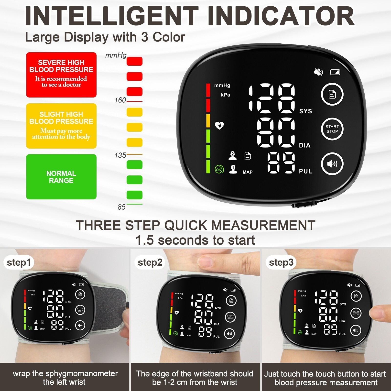 Wrist Blood Pressure Monitor with Touchscreen, 13.5 19.5cm Cuff 2 120 Memory