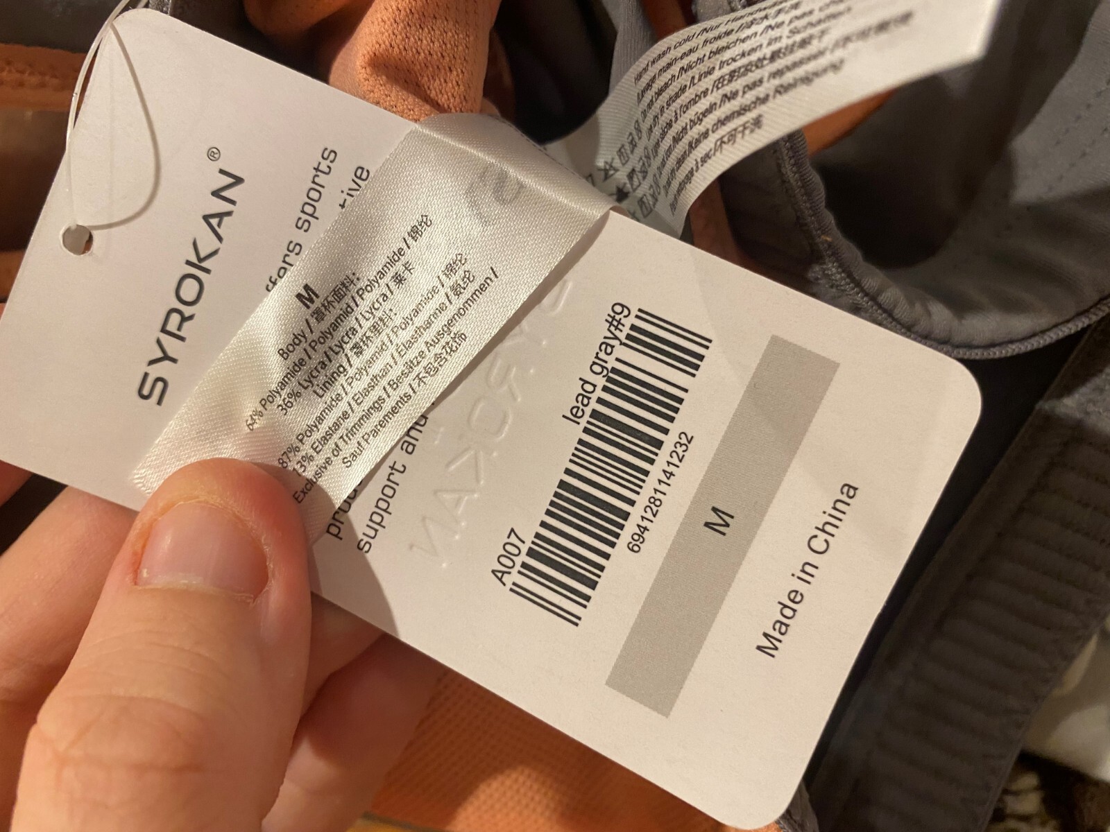 как выглядит SYROKAN Womens Workout Sports Bra High Impact Wirefree Size M Lead Gray фото