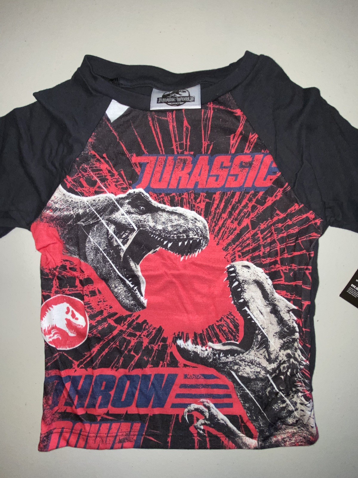 как выглядит Jurassic World pajamas kids size 6 set shirt pants red black throw down фото