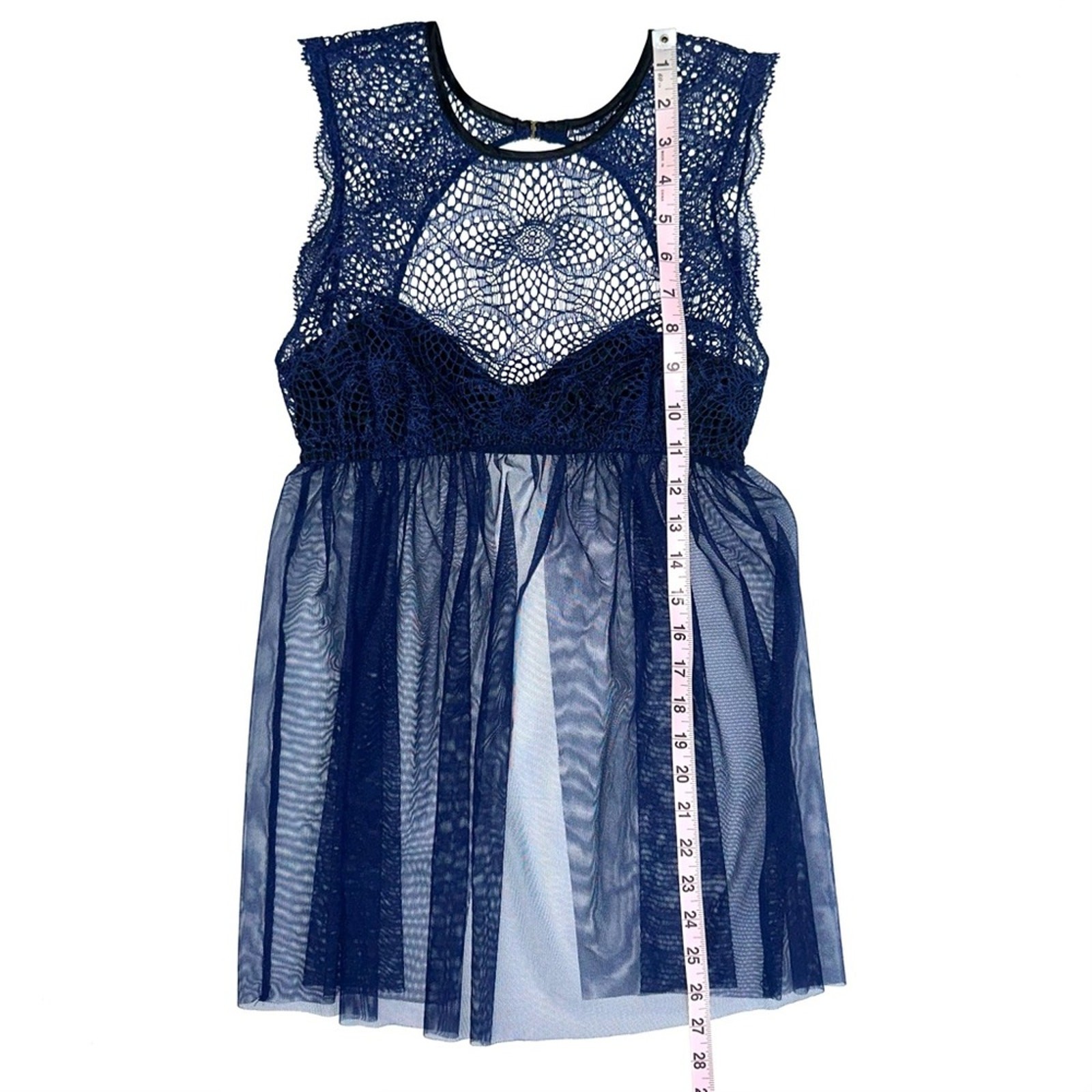 Victoria s Secret Navy Blue Lace Tulle Babydoll Lingerie Size Small