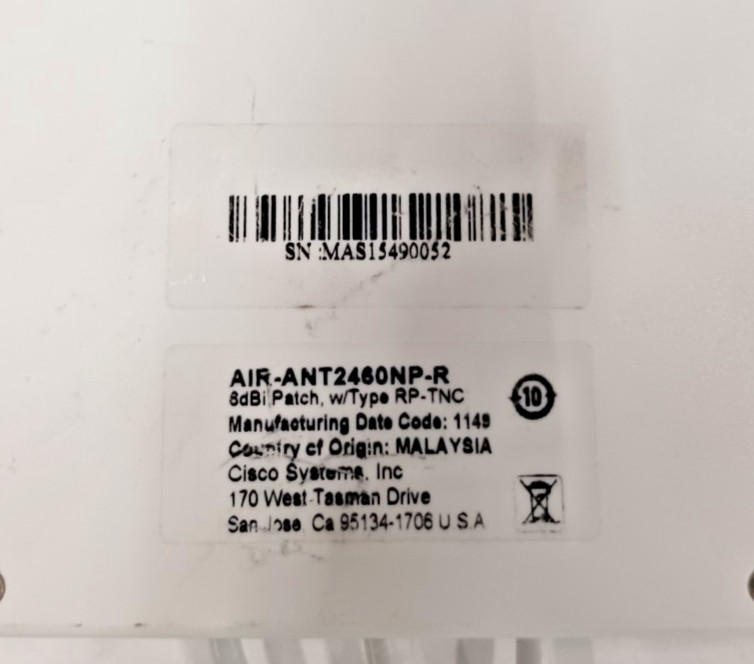 CISCO AIR-ANT2460NP-R Indoor/Outdoor 6dBi 2.4GHz Mimo Patch Antenna, type RP-TNC