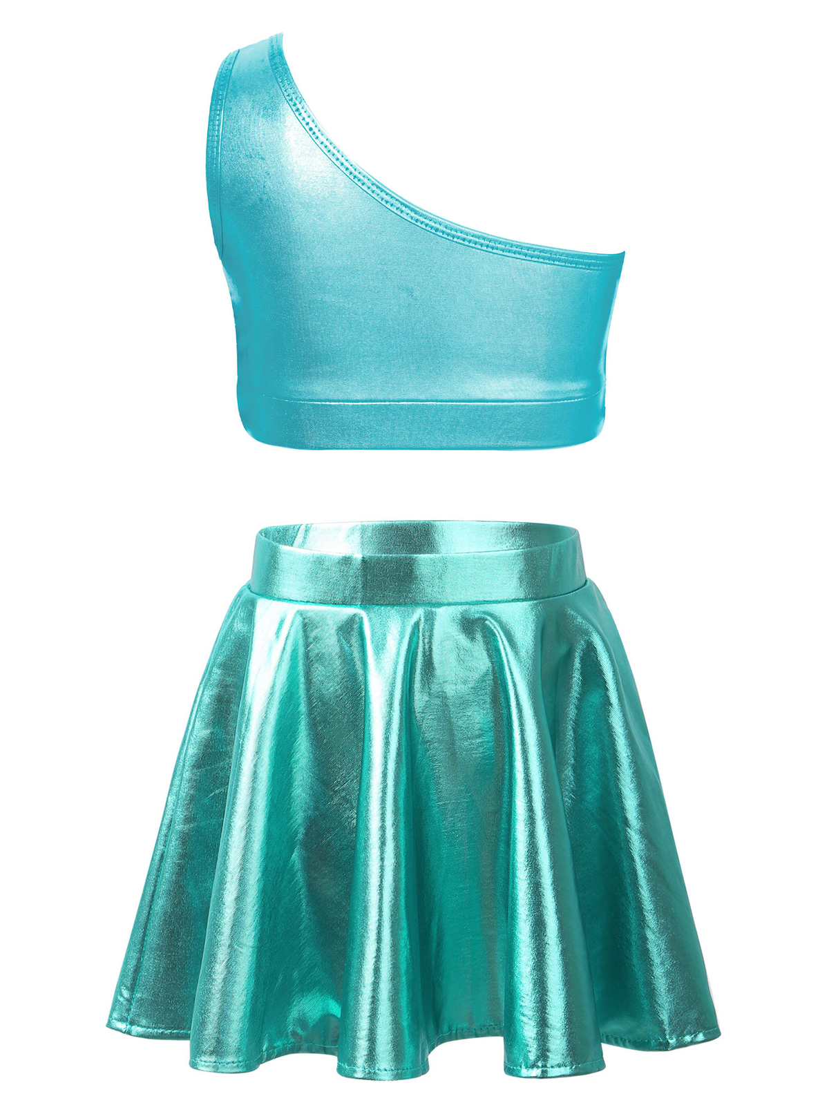 как выглядит Kids Girls Crop Top With Skirt Metallic Outfit Dance Dancewear Competition Gym фото