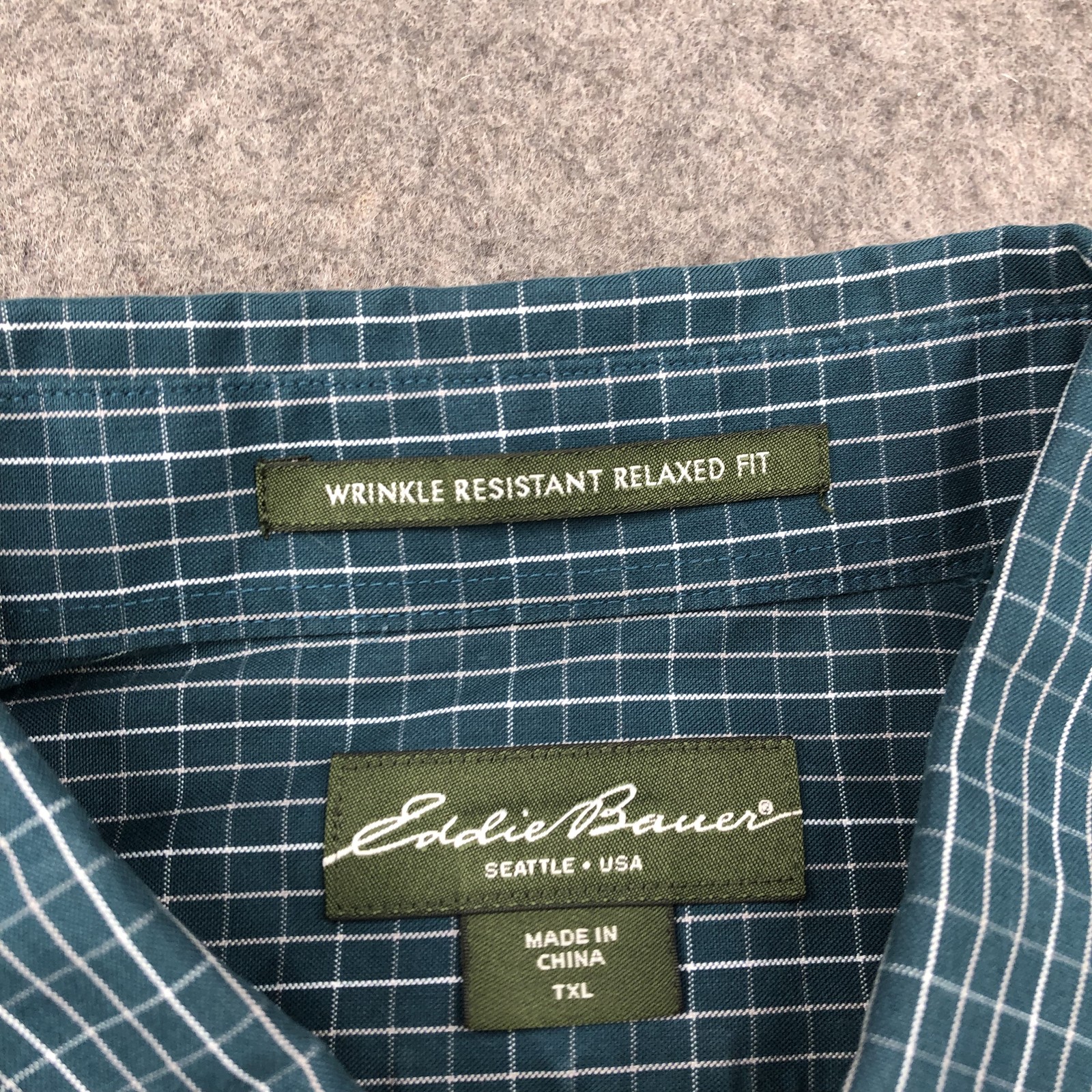 Eddie Bauer Shirt Mens 2XL Teal Green Plaid Button Down Wrinkle Resistant Casual