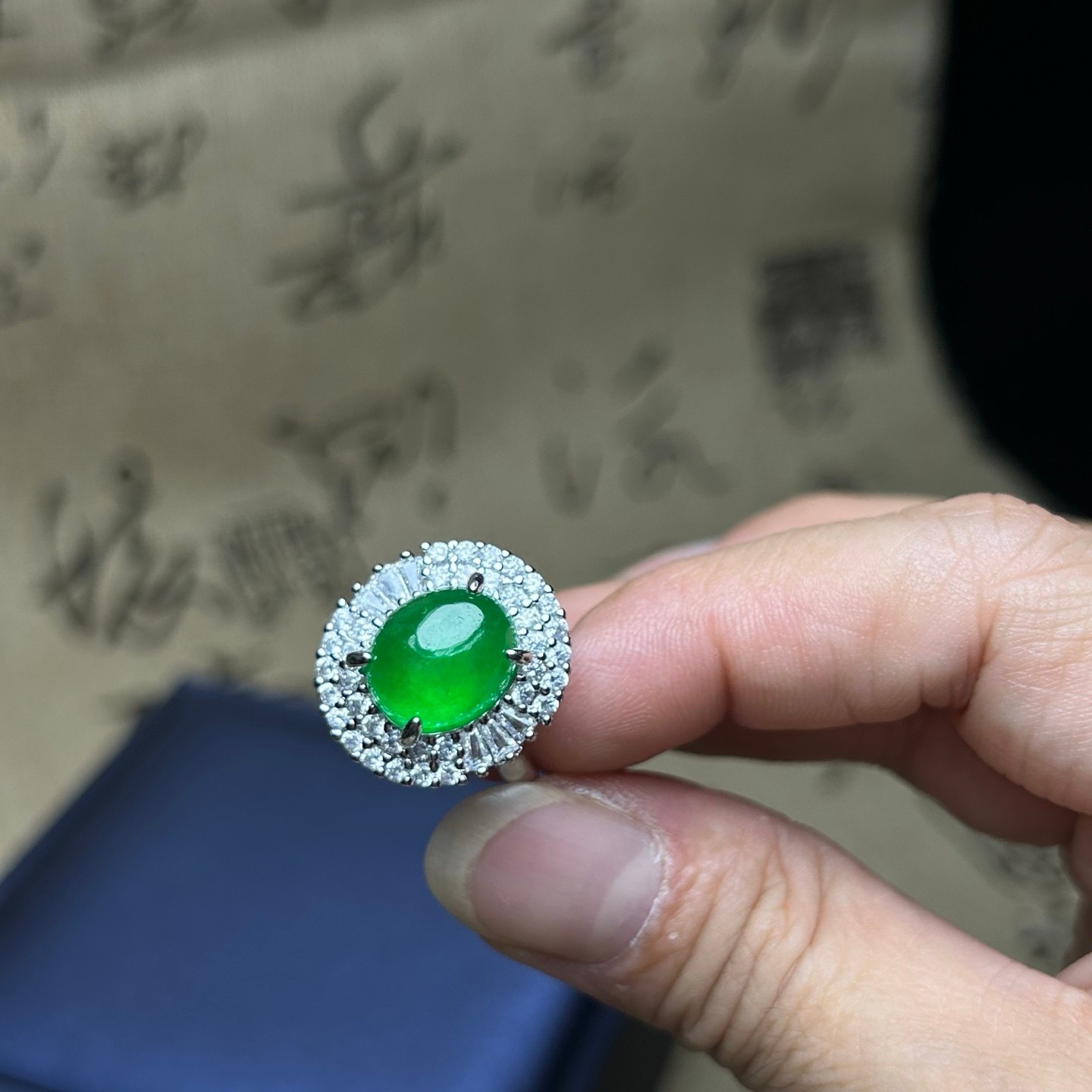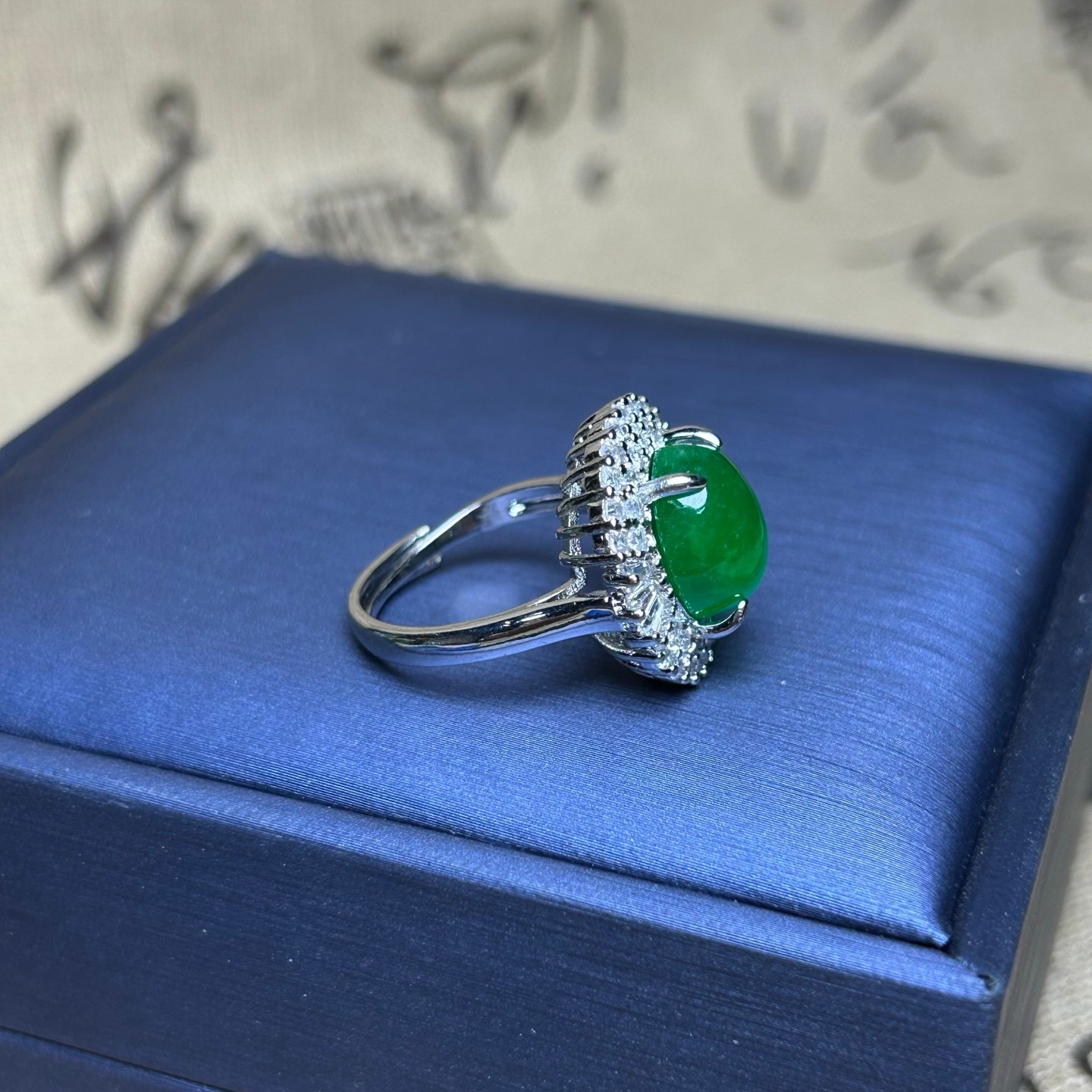 как выглядит Certified Nature Inlay Ice Green Burmese Jade Jadeite Egg Amulet Women Rings фото