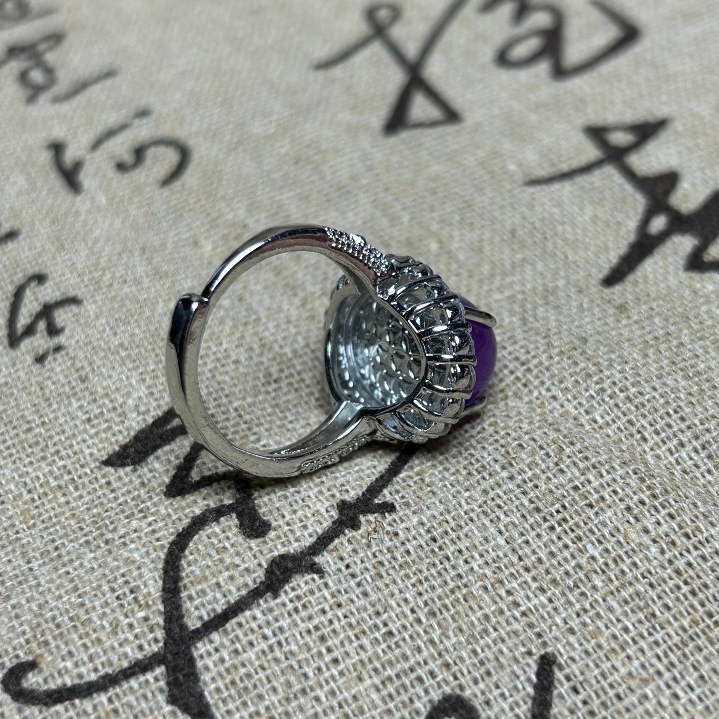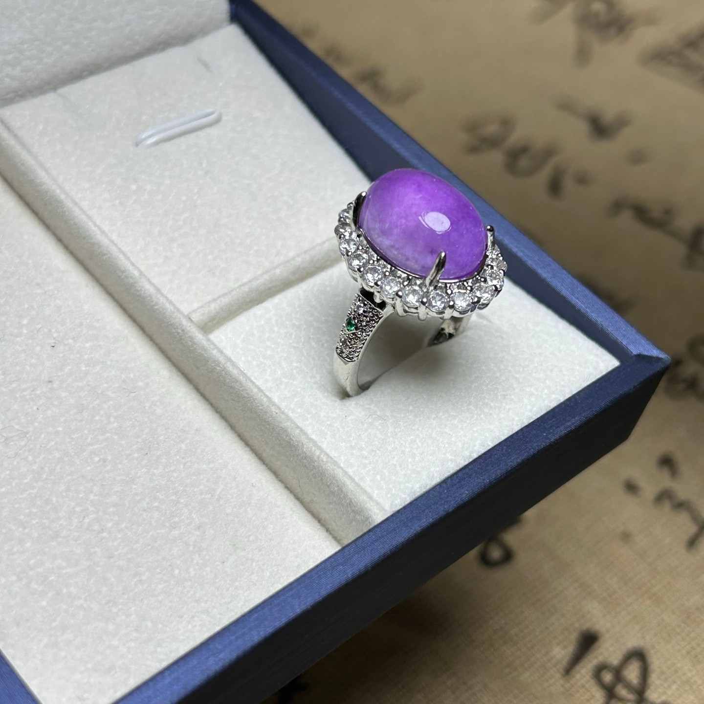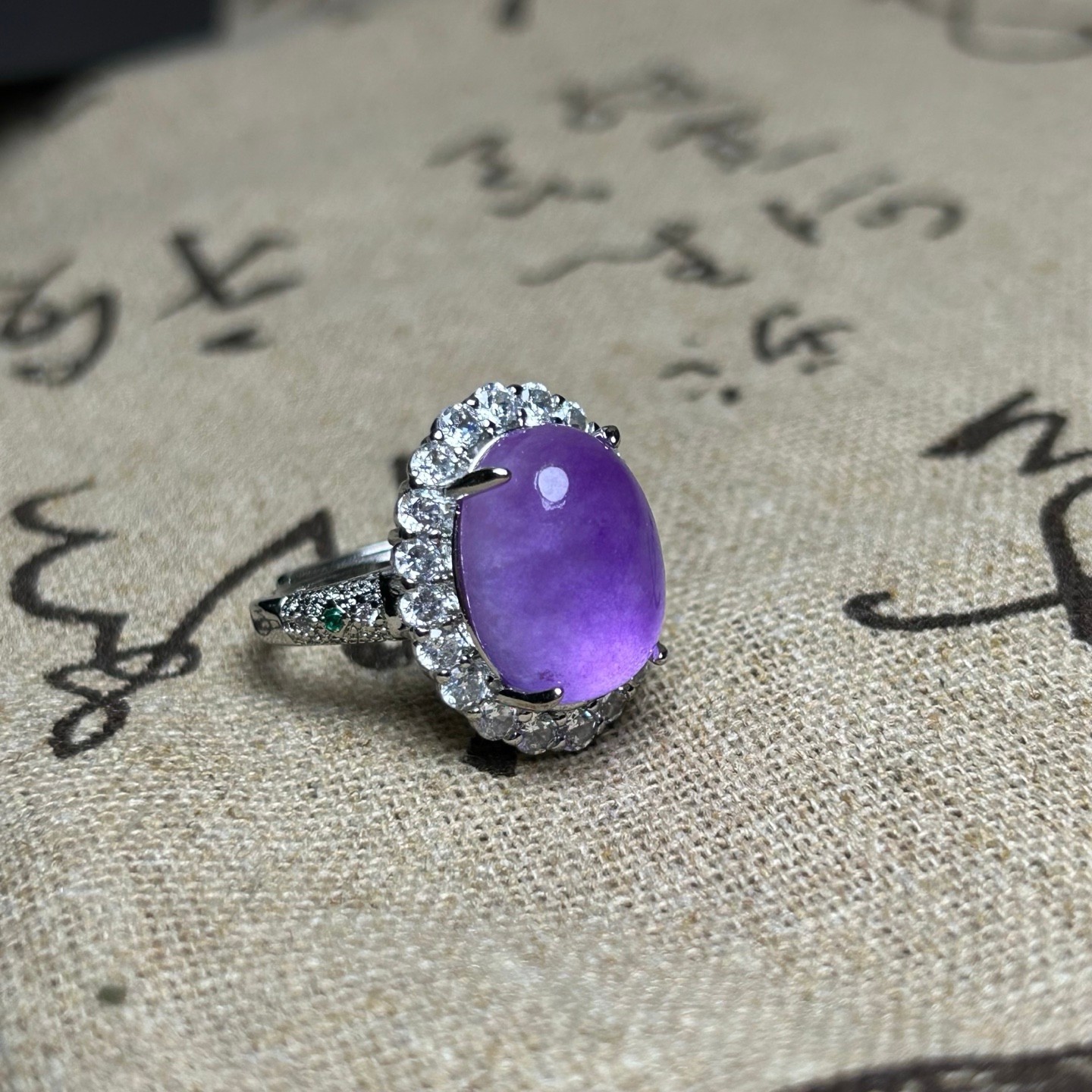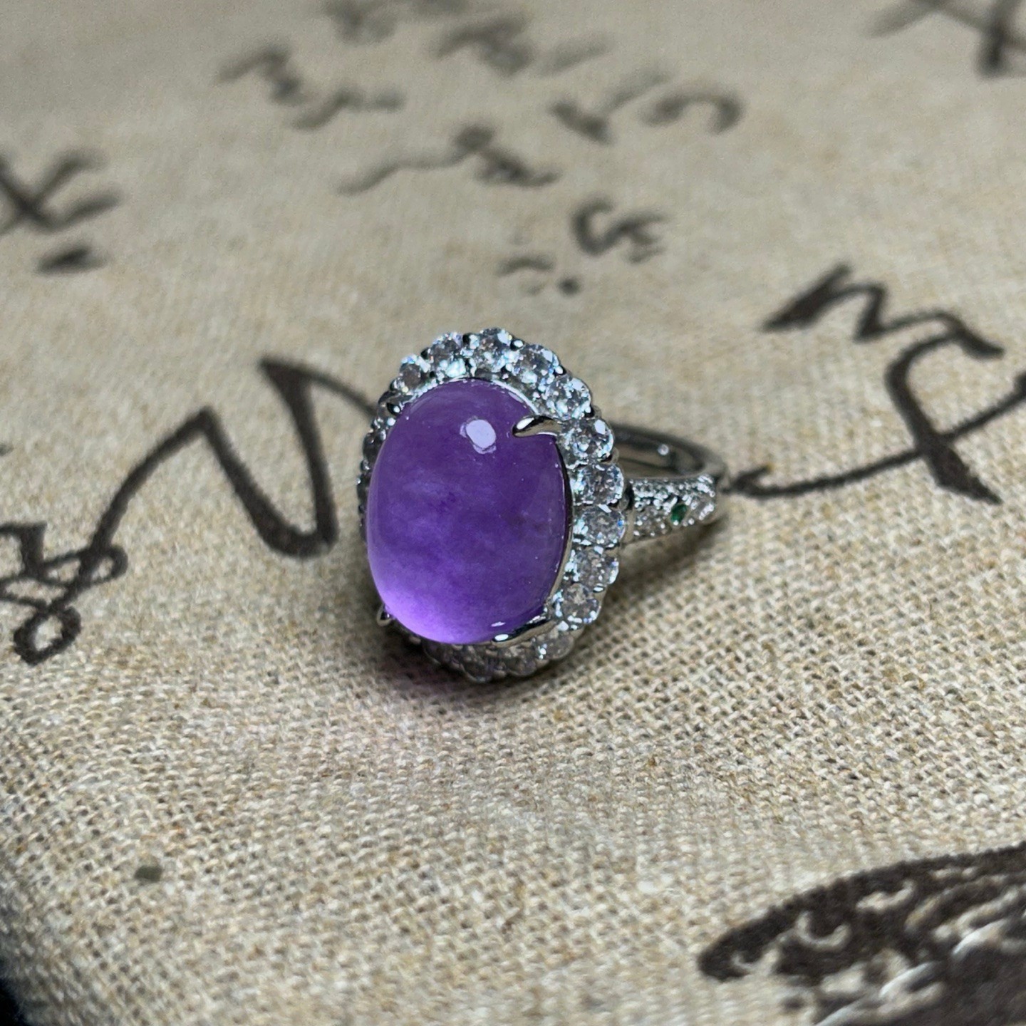 как выглядит Certified Nature Inlay Ice Lavender Burmese Jade Jadeite Egg Amulet Women Rings фото