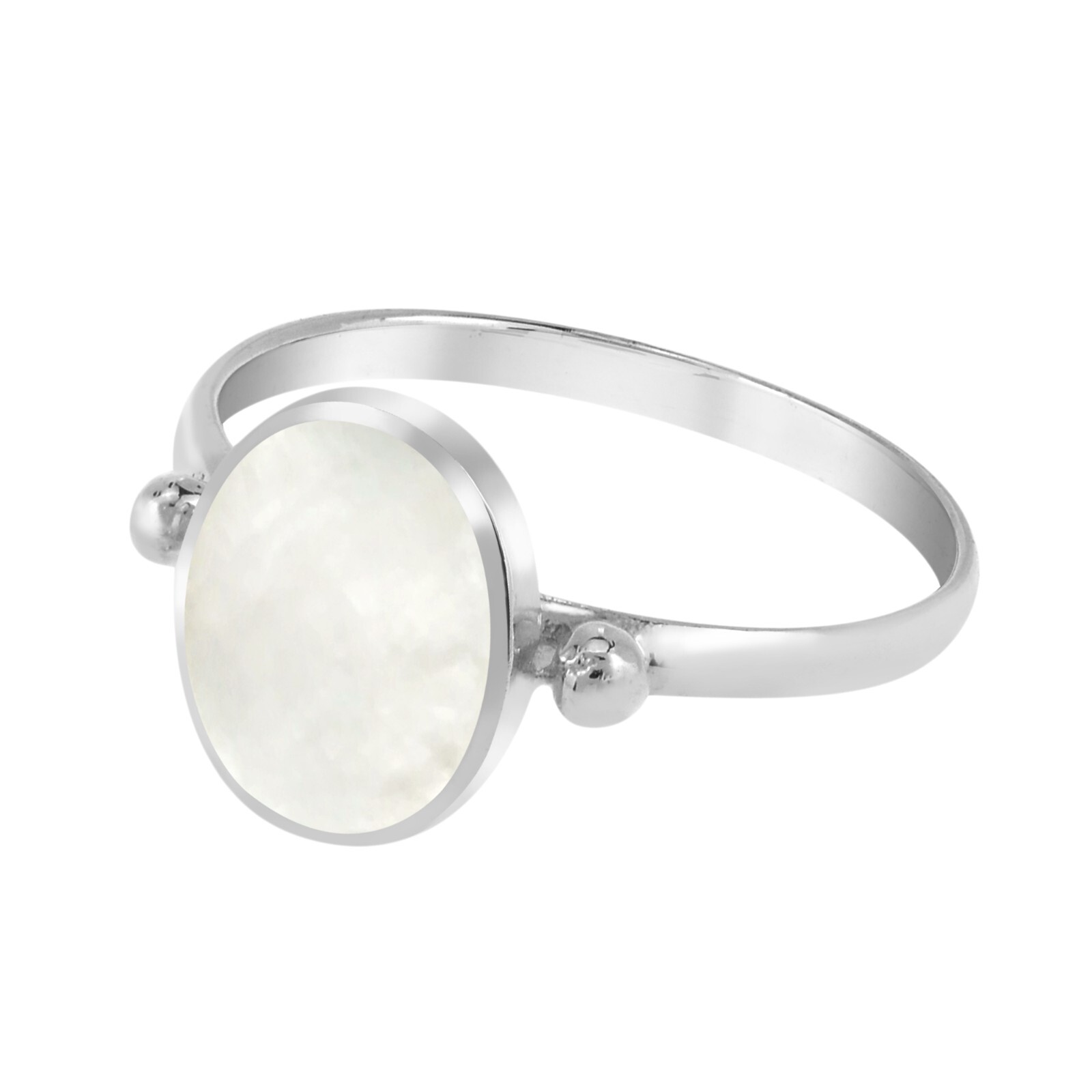 Simply Stunning Oval Shaped White Seashell Sterling Silver Band Ring-6