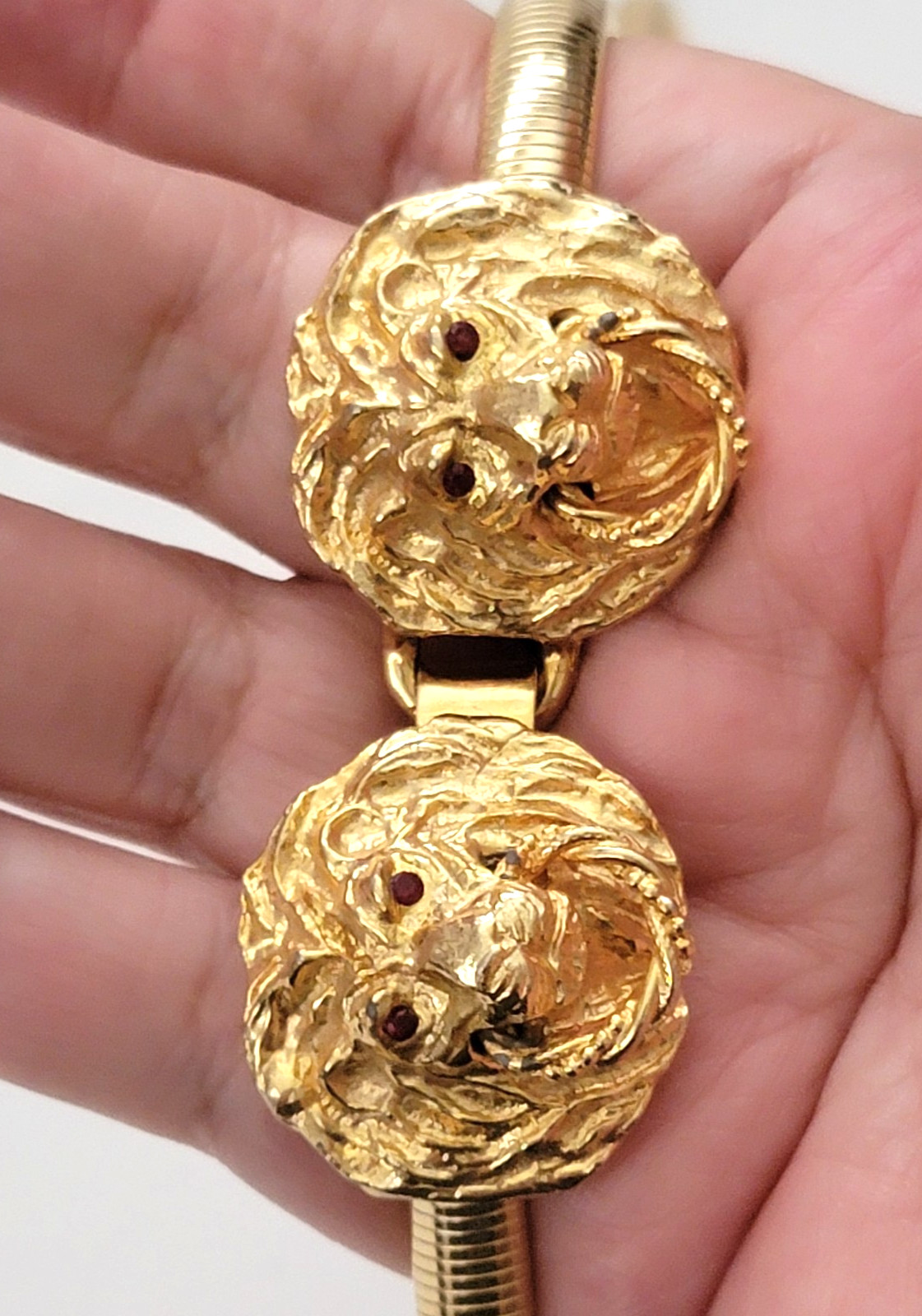 как выглядит Vintage Double Lion Head Stretch Omega Chain Gold Tone Belt 25" to 29" - 7mm фото