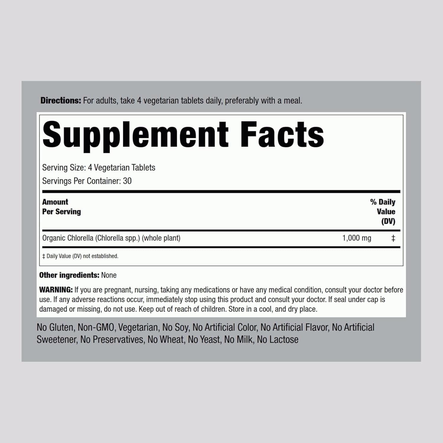 Piping Rock Chlorella 1000mg 120 Tablets Blue-Green Algae Broken Cell Wa