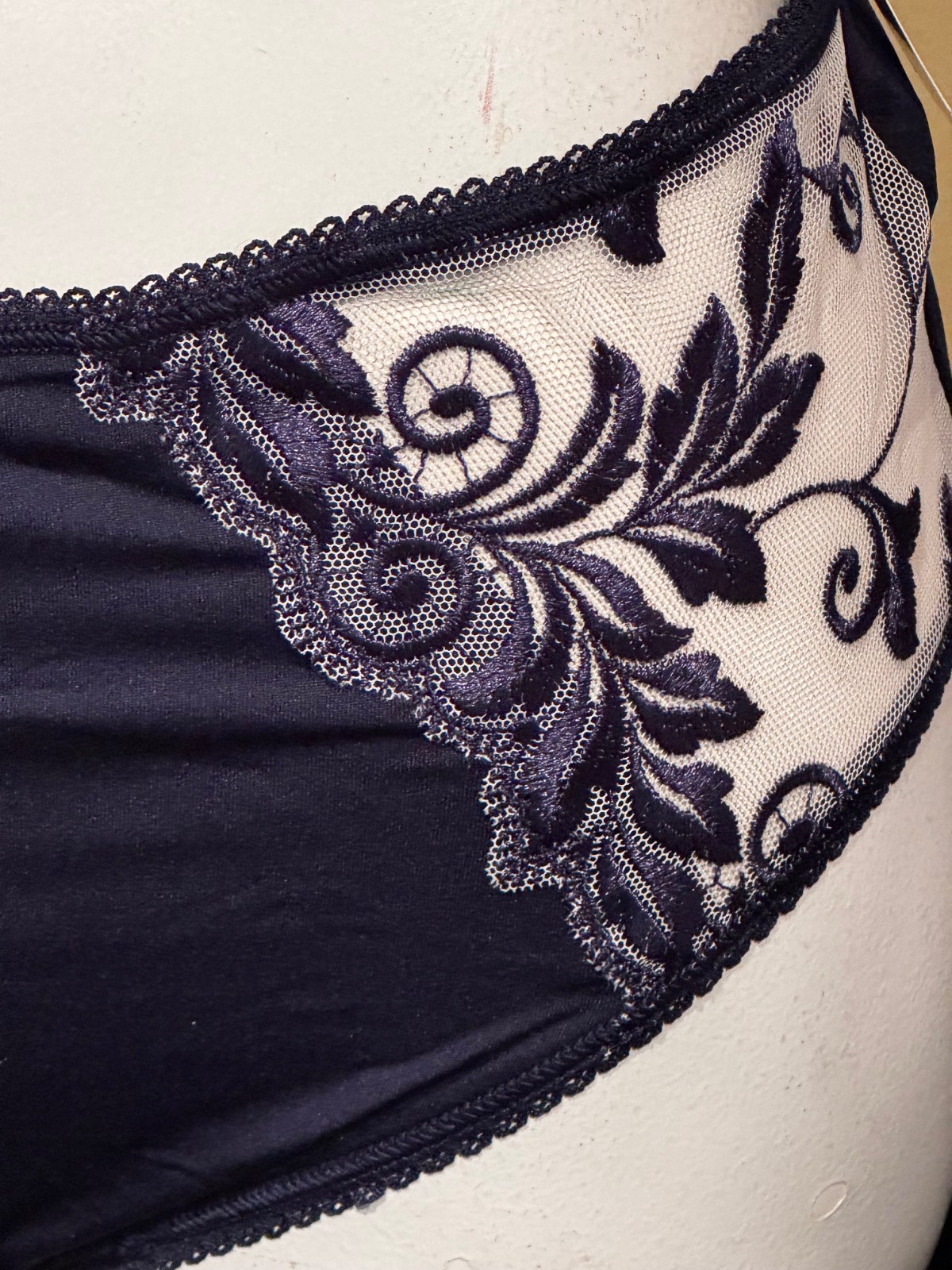 как выглядит SOMA NAVY BLUE SENSUOUS LACE VANISHING EDGE HIPSTER BRIEF PANTIES MEDIUM фото