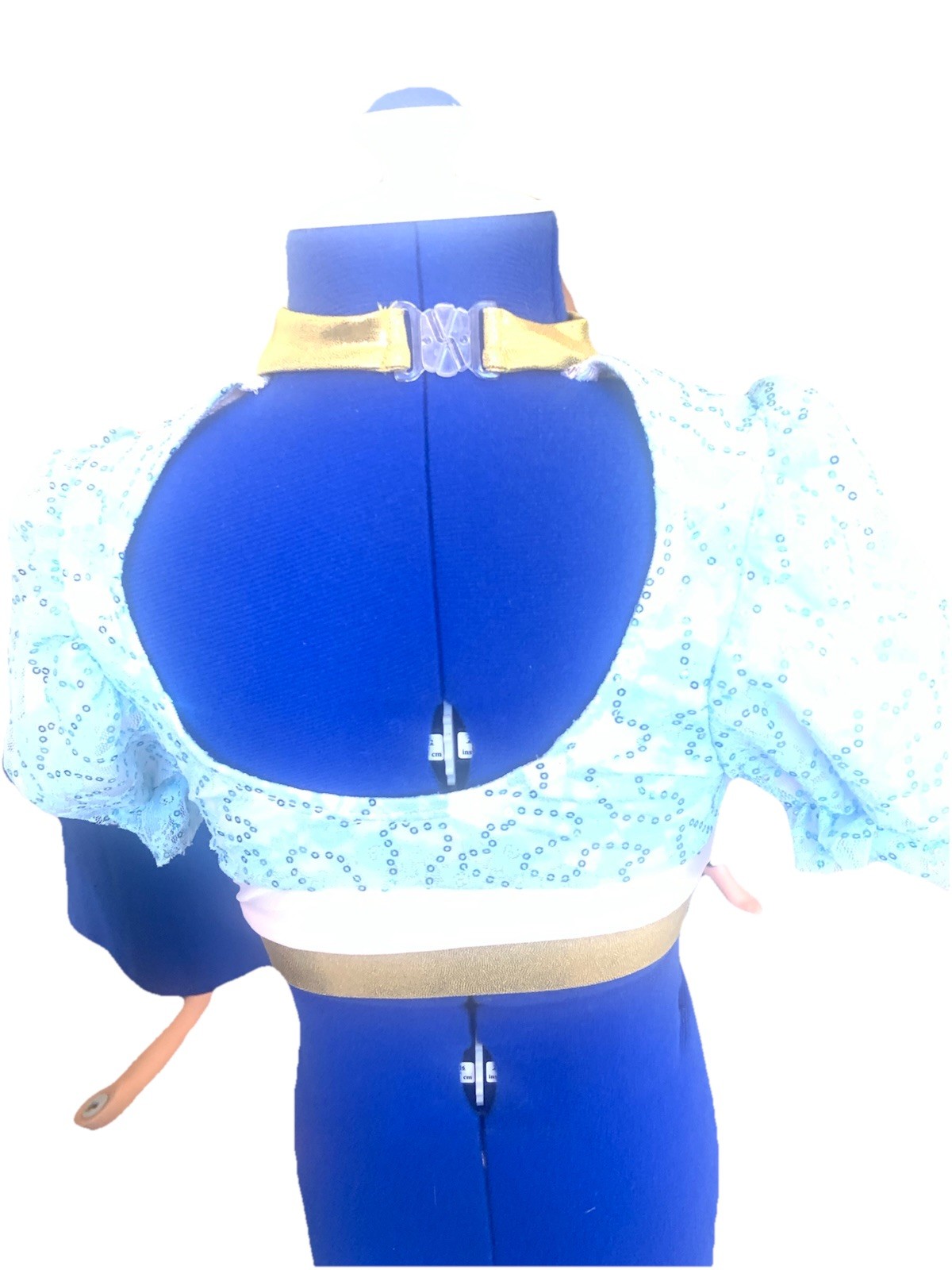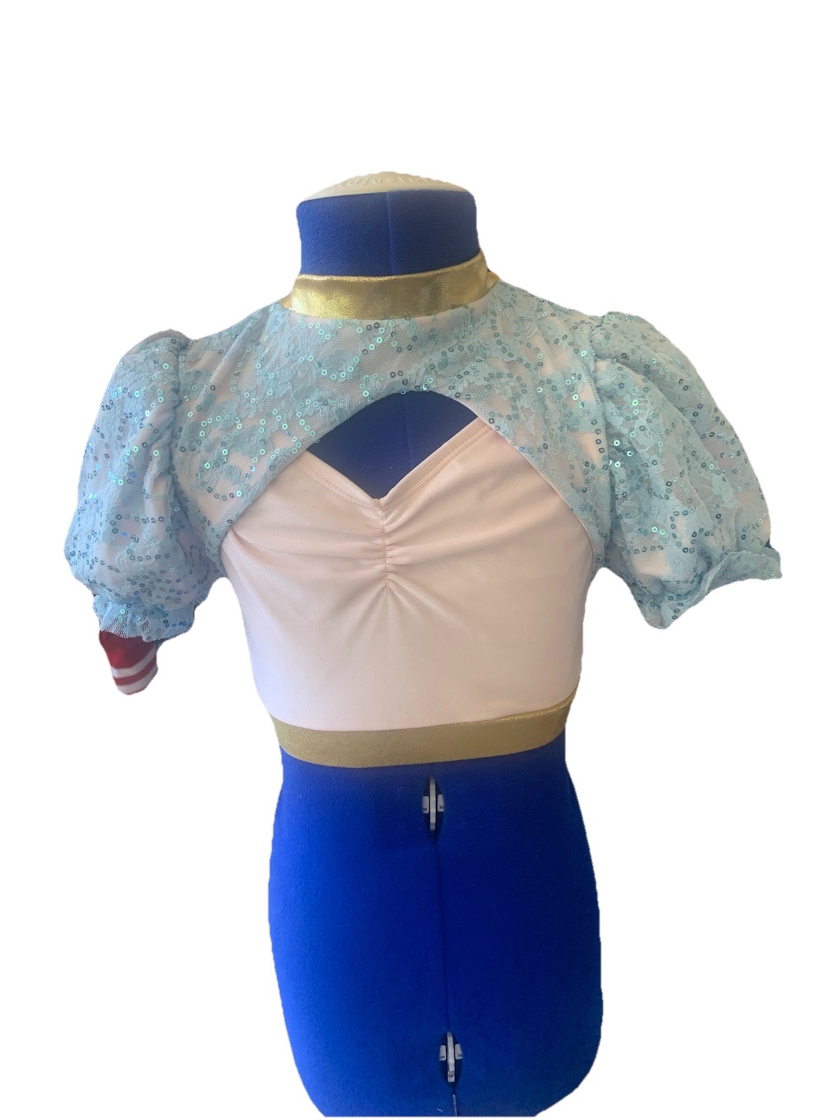 Dance Child s Size 8-10 Crop Top Pink Turquoise Rose Pattern, Mesh With Sequence