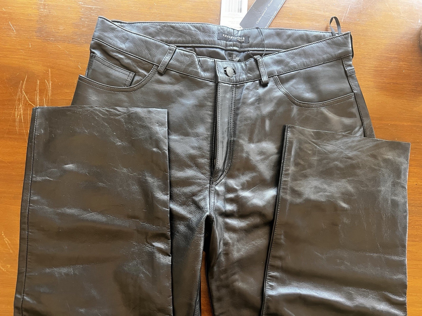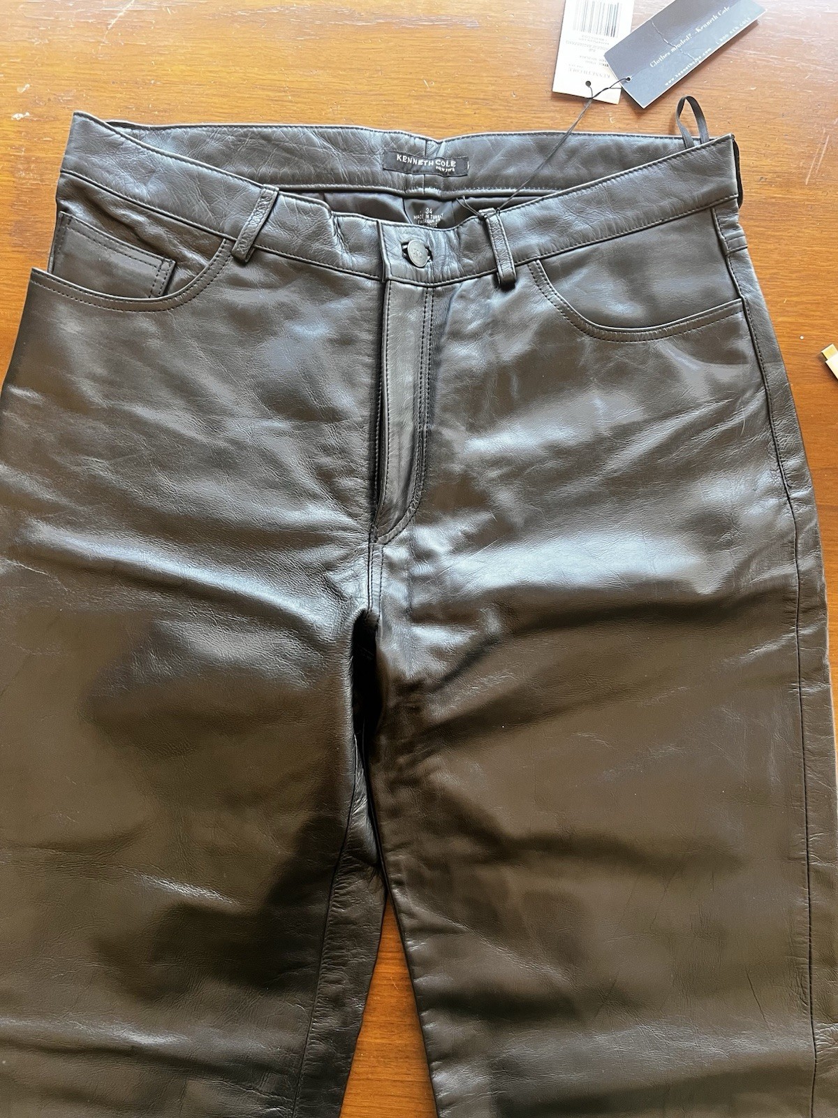 KENNETH COLE, Men s Black Leather Pants With Tags Size 34