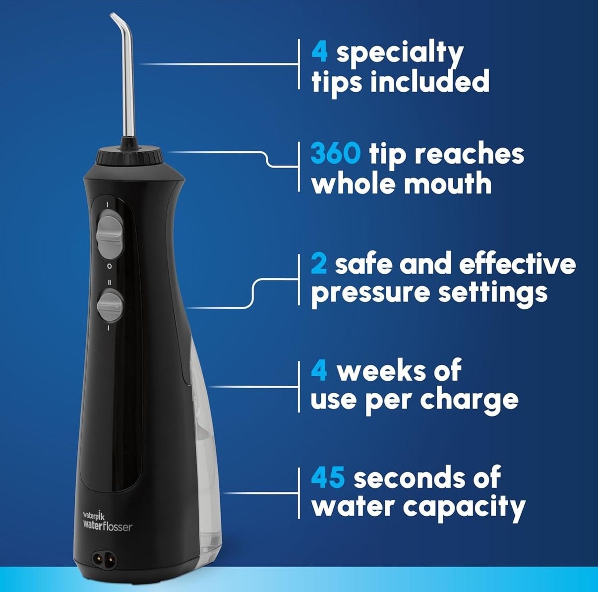 Waterpik Cordless Pearl Water Flosser - Black, Portable Rechargeable