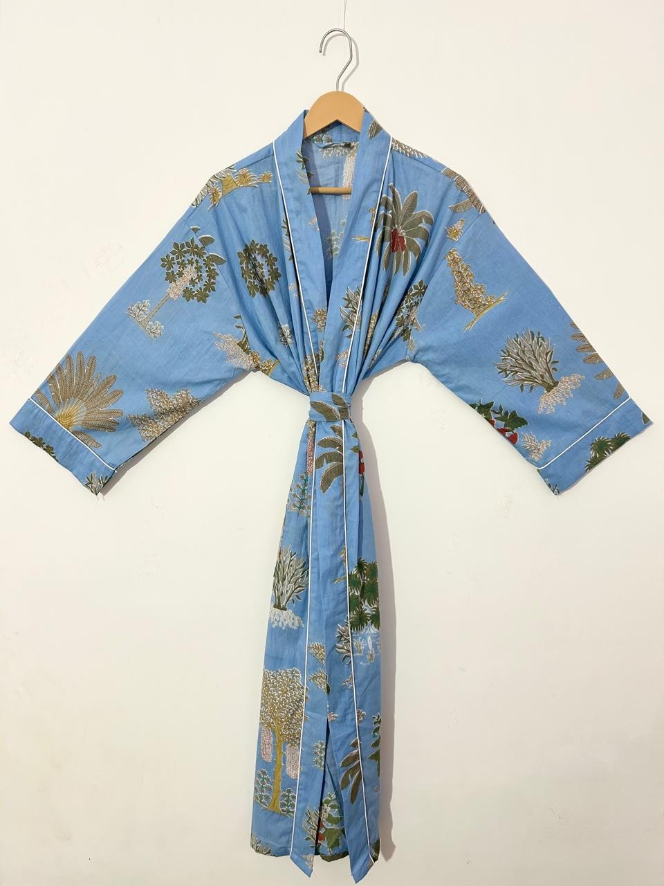 Indian Nightwear Robe Gown Dress Cotton Long Kimono Scorpions Printed Women's 88