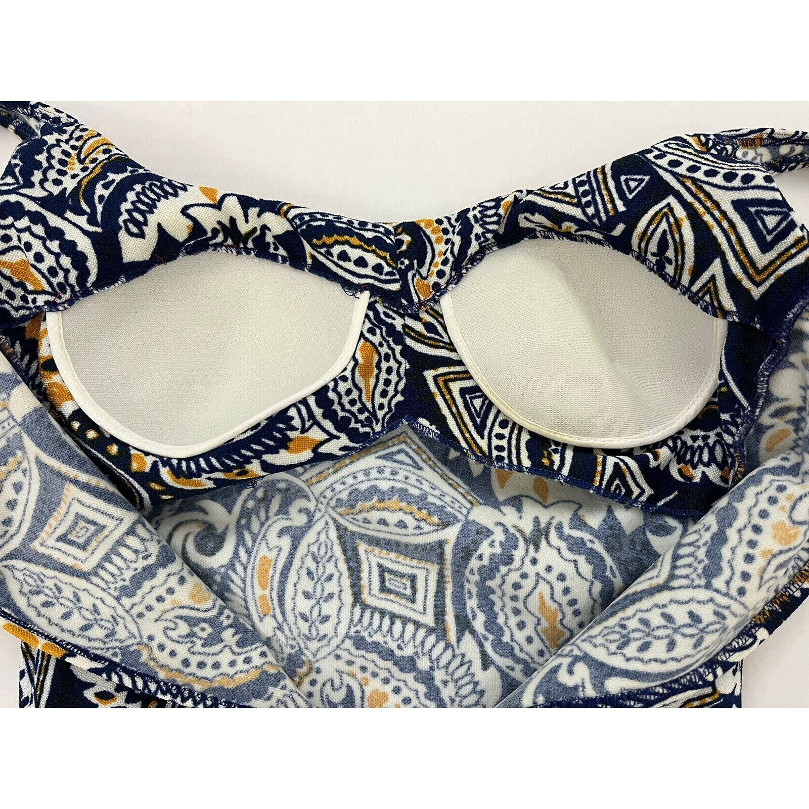 Vintage 50's 60's swimsuit One Piece Swimsuit Blue Gold Abstract Helanca Nylon