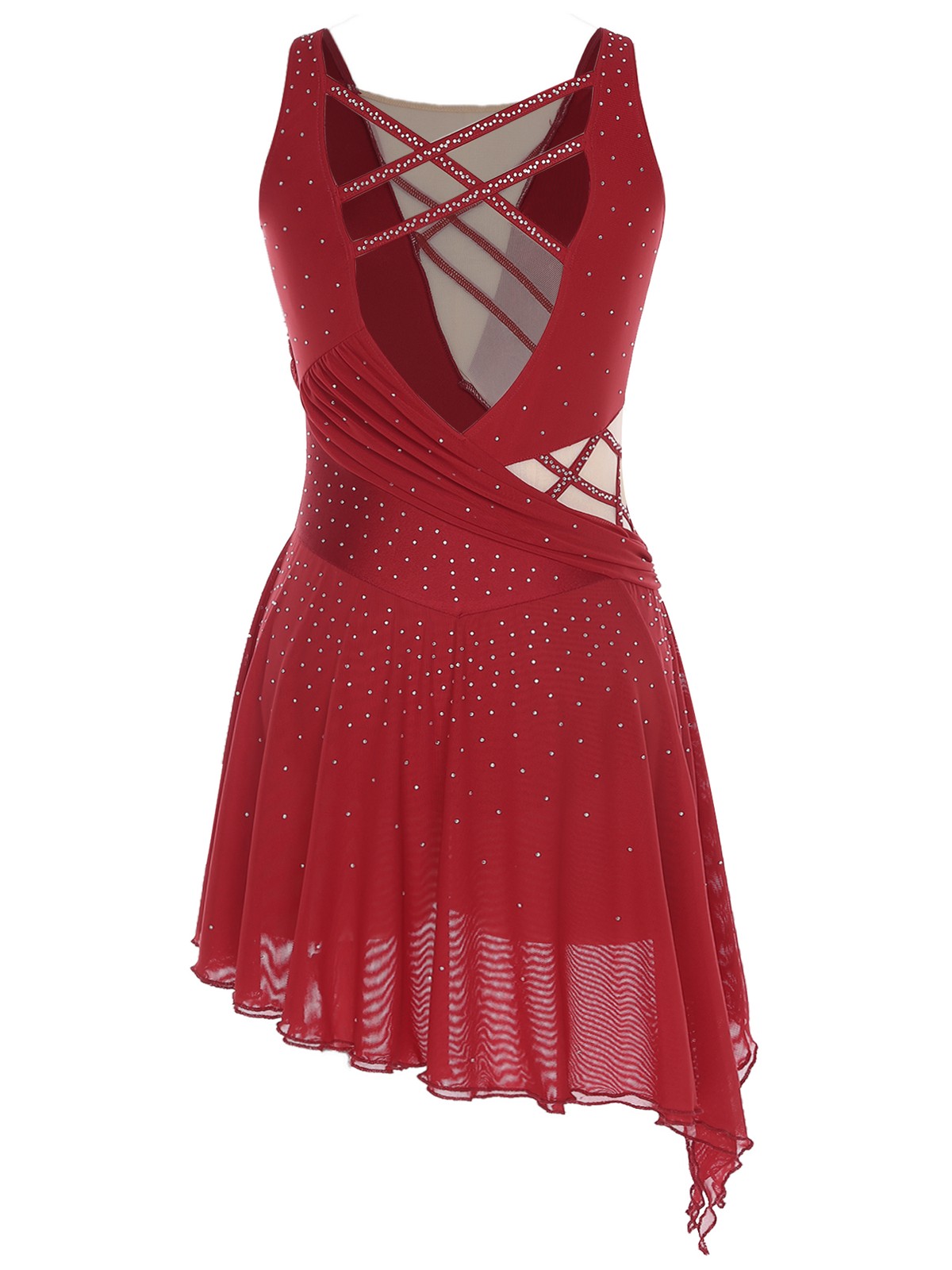 Women Dresses Figure-Skating Dancewear Glittery Dress Stage Rhinestones Party