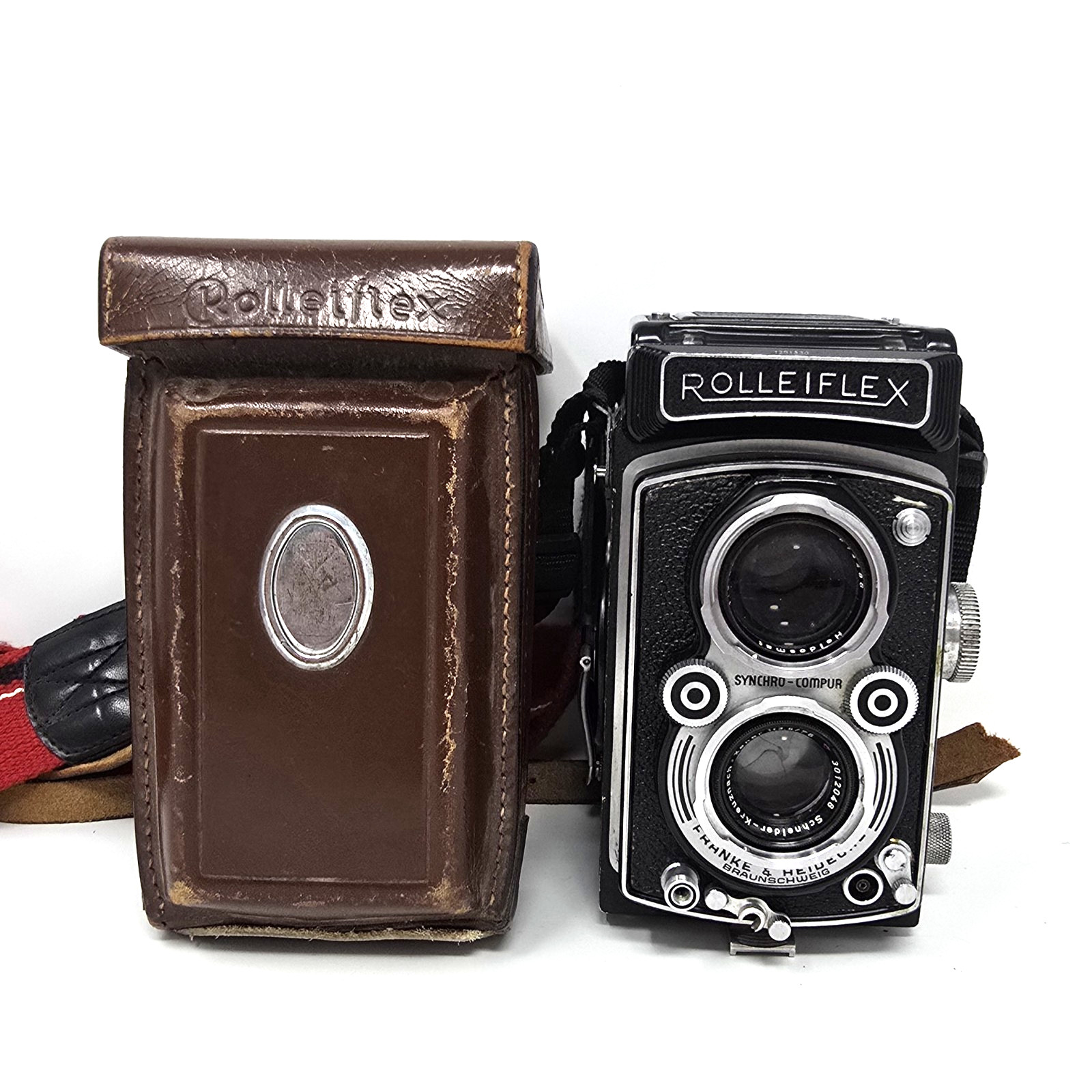 Vintage Rolleiflex Camera Synchro Compur Franke Heidecke Bundle w/ Case Flash