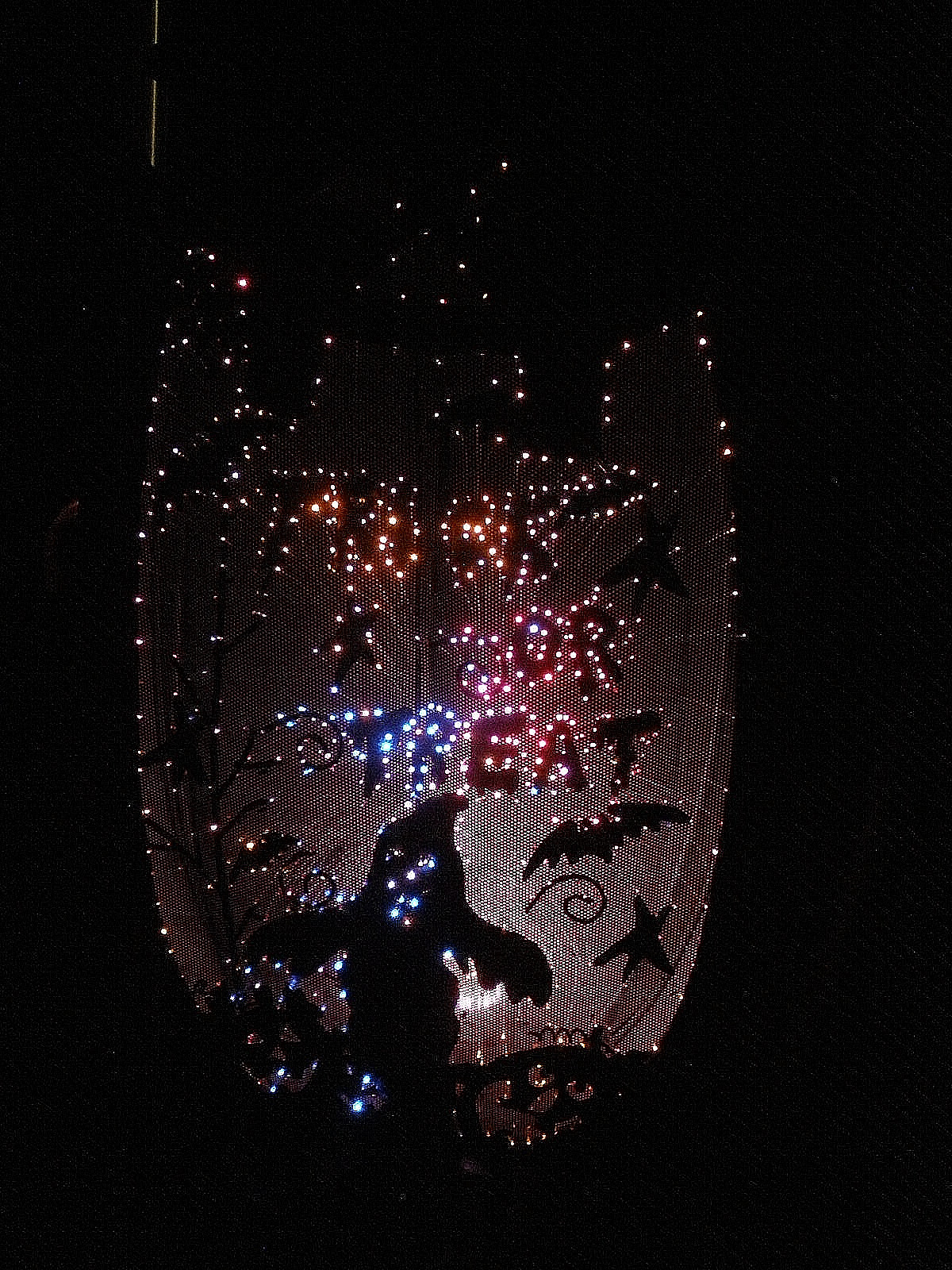 LARGE METAL TRICK OR TREAT PUMPKIN GHOST LIGHT UP HALLOWEEN DECOR WORKS
