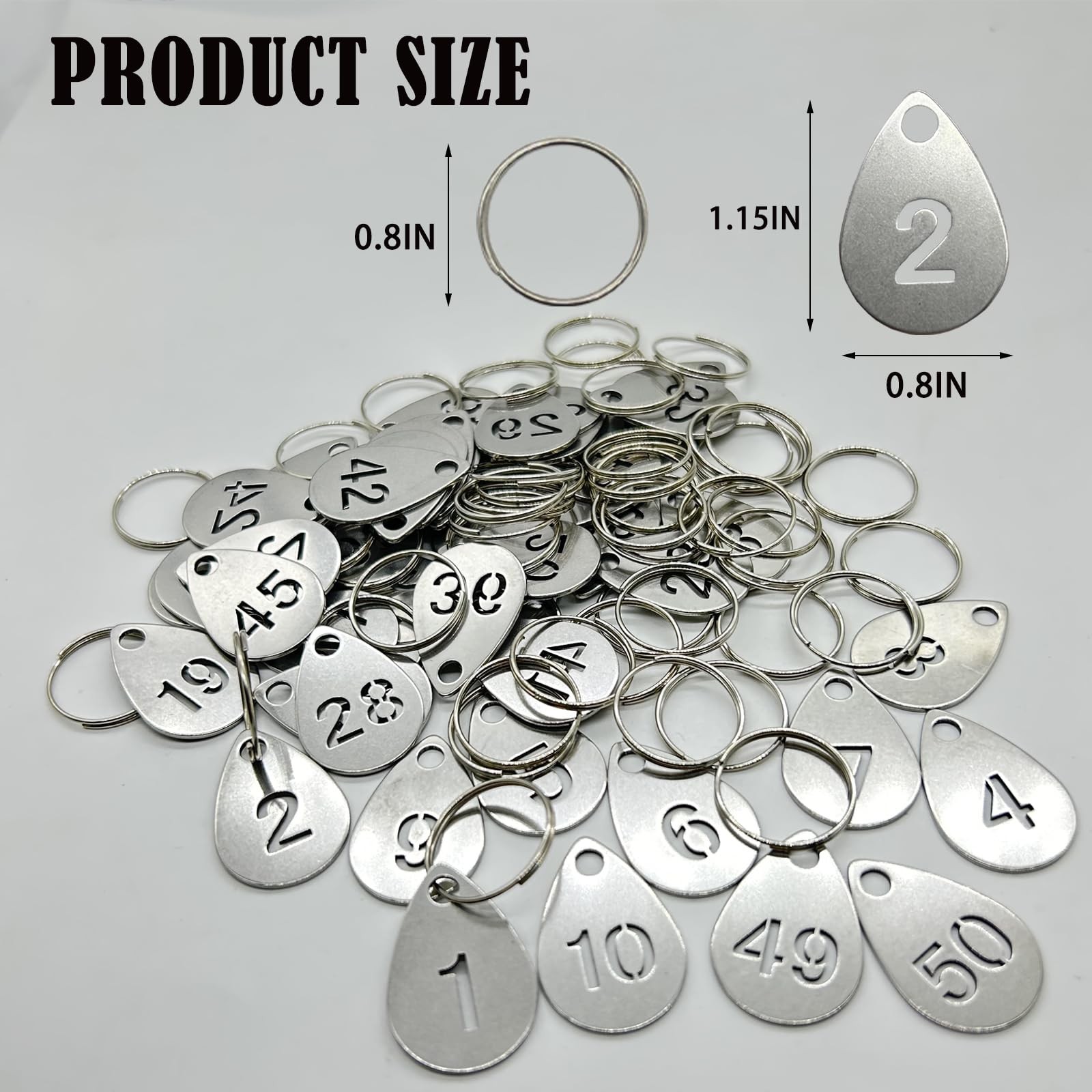 50pcs Stainless Steel Numbered Tags - Metal Water Droplets ID Tags with Key R...