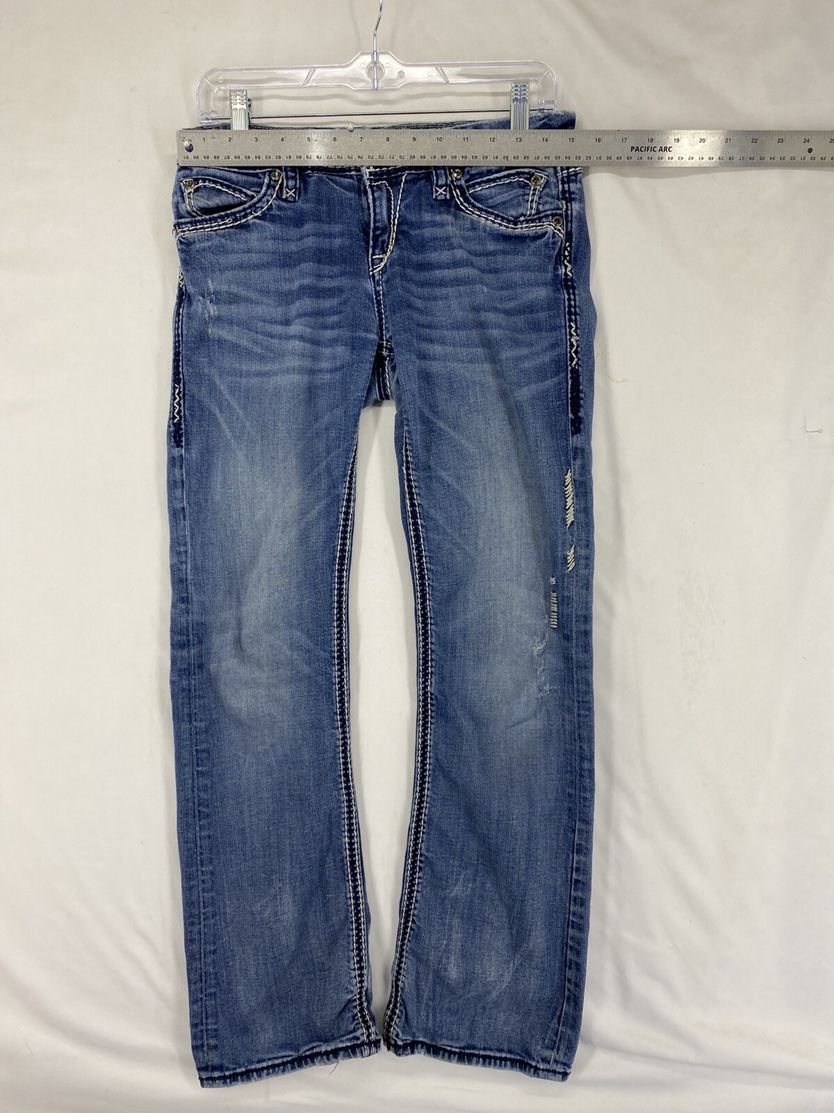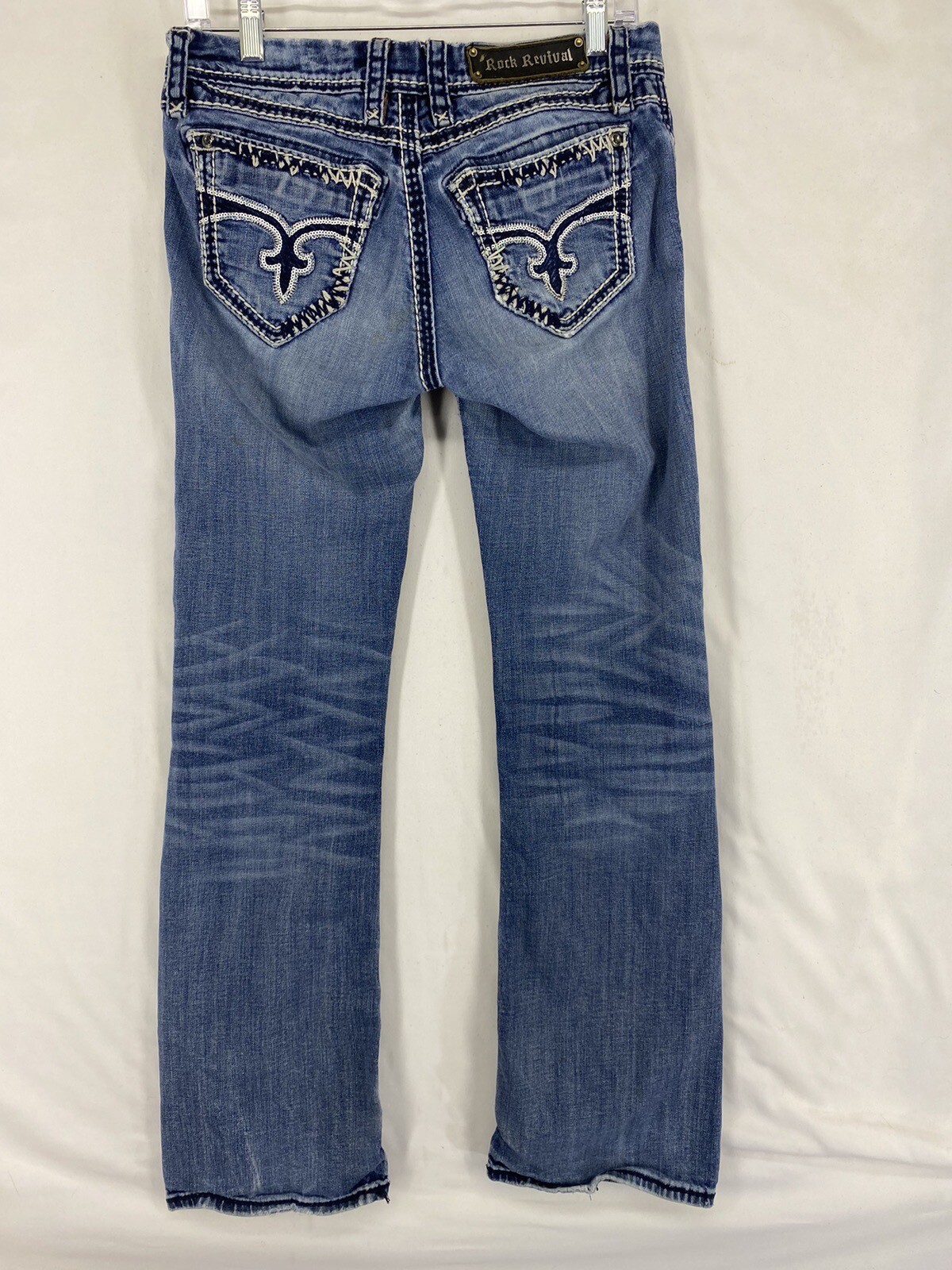 ROCK REVIVAL Jeans Size 28 Charlotte Easy Boot Cut Stretch Whiskered Embellished