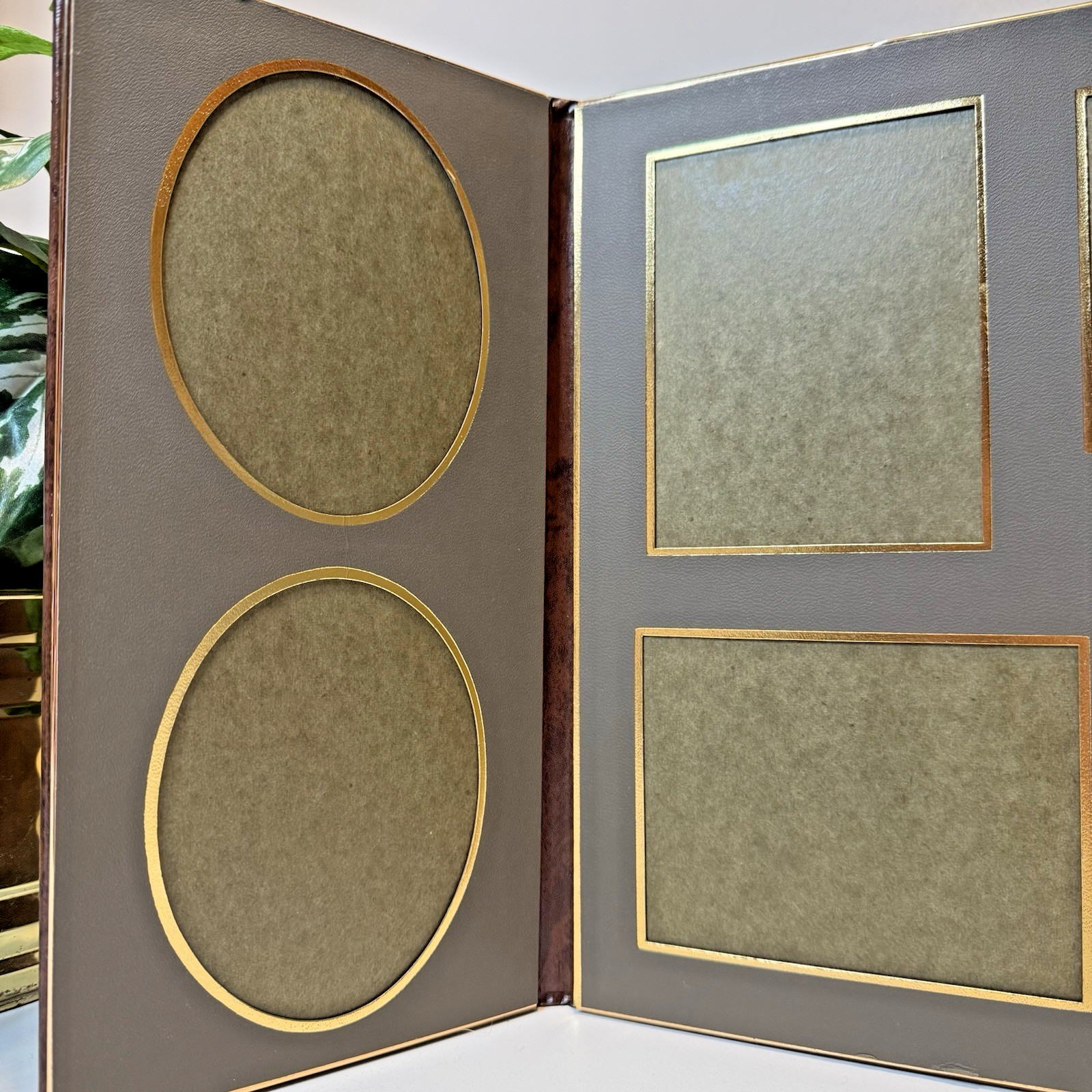 • Vintage Faux Leather 8 Picture/Photo Tri-Fold Portfolio Display Marbled Brown