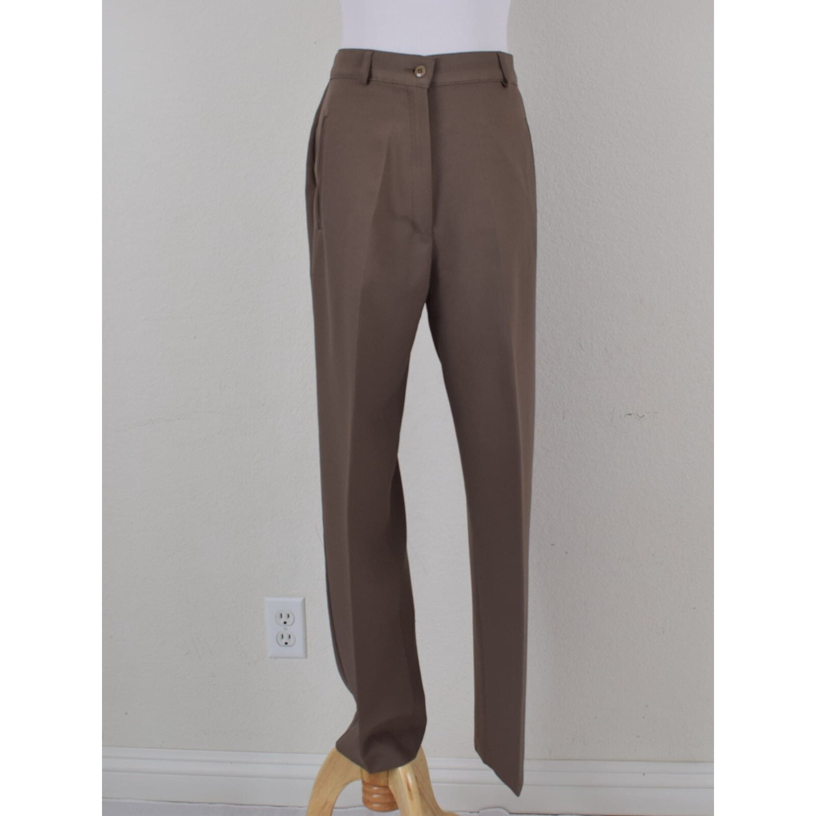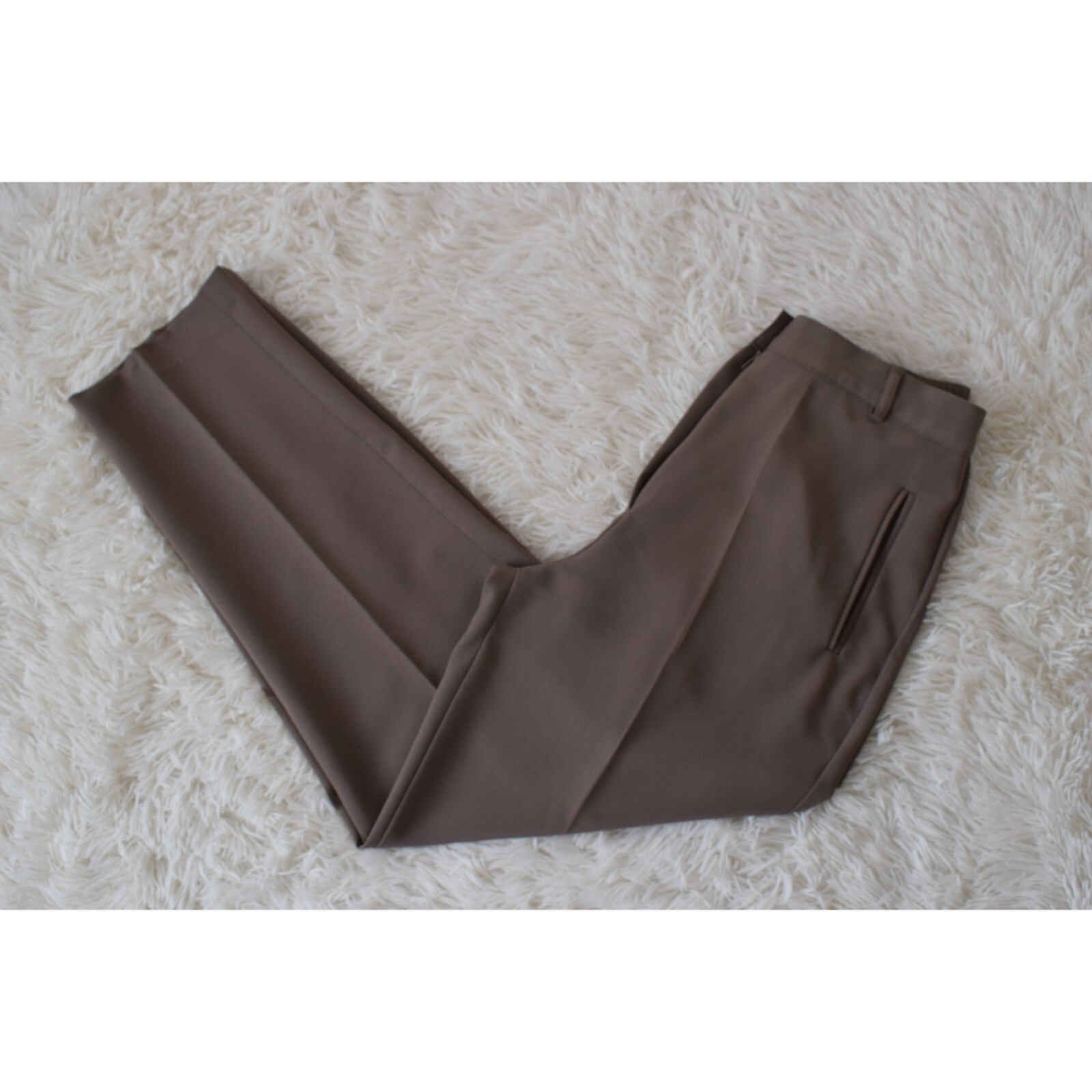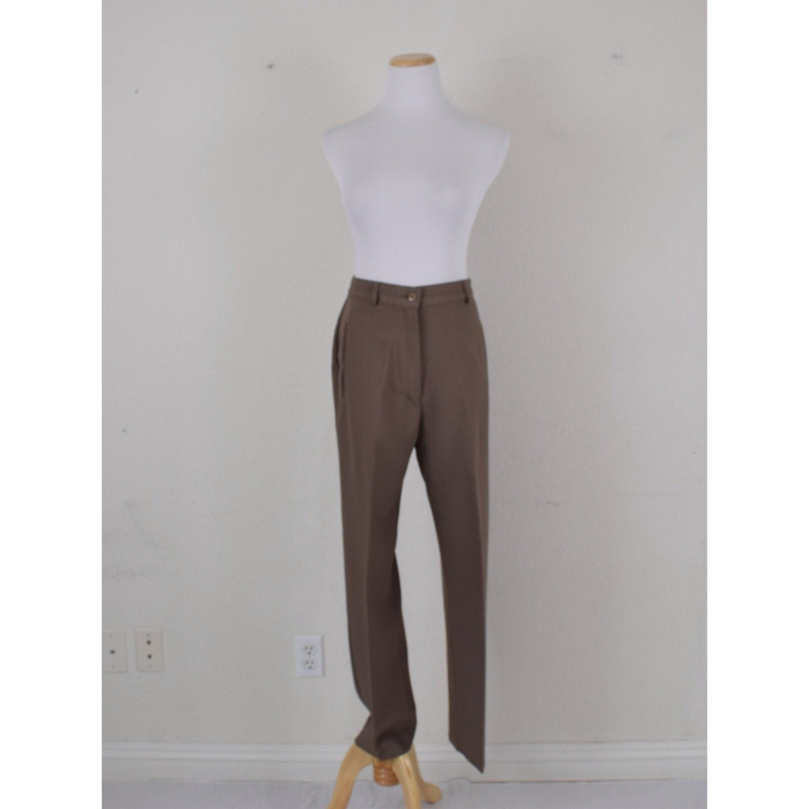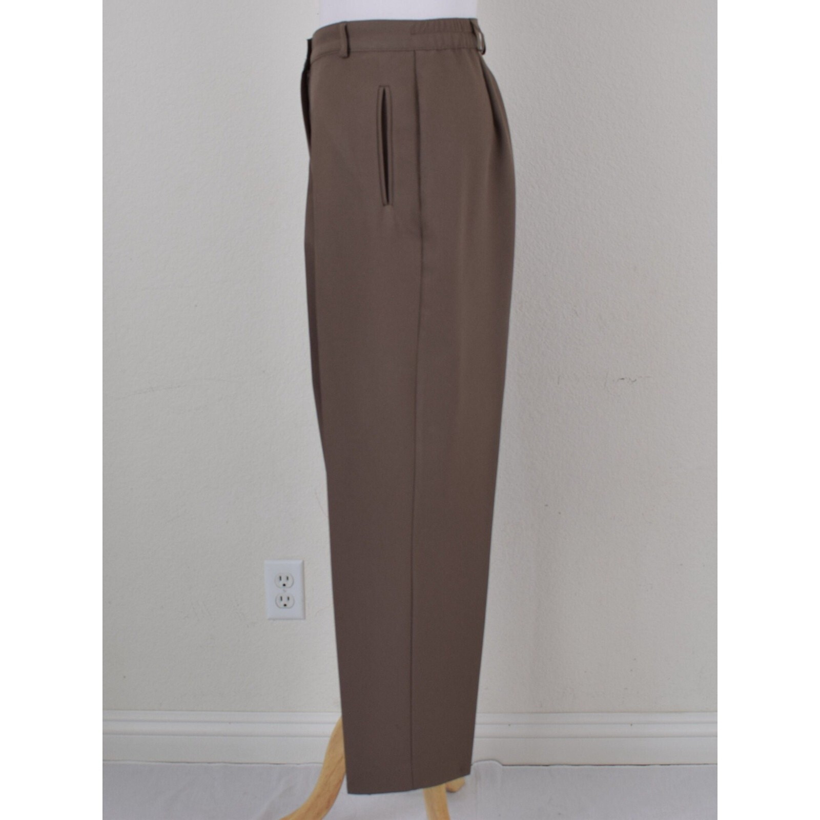как выглядит Vintage 80s Taupe Liz Baker Polyester Trousers 28-29 waist фото