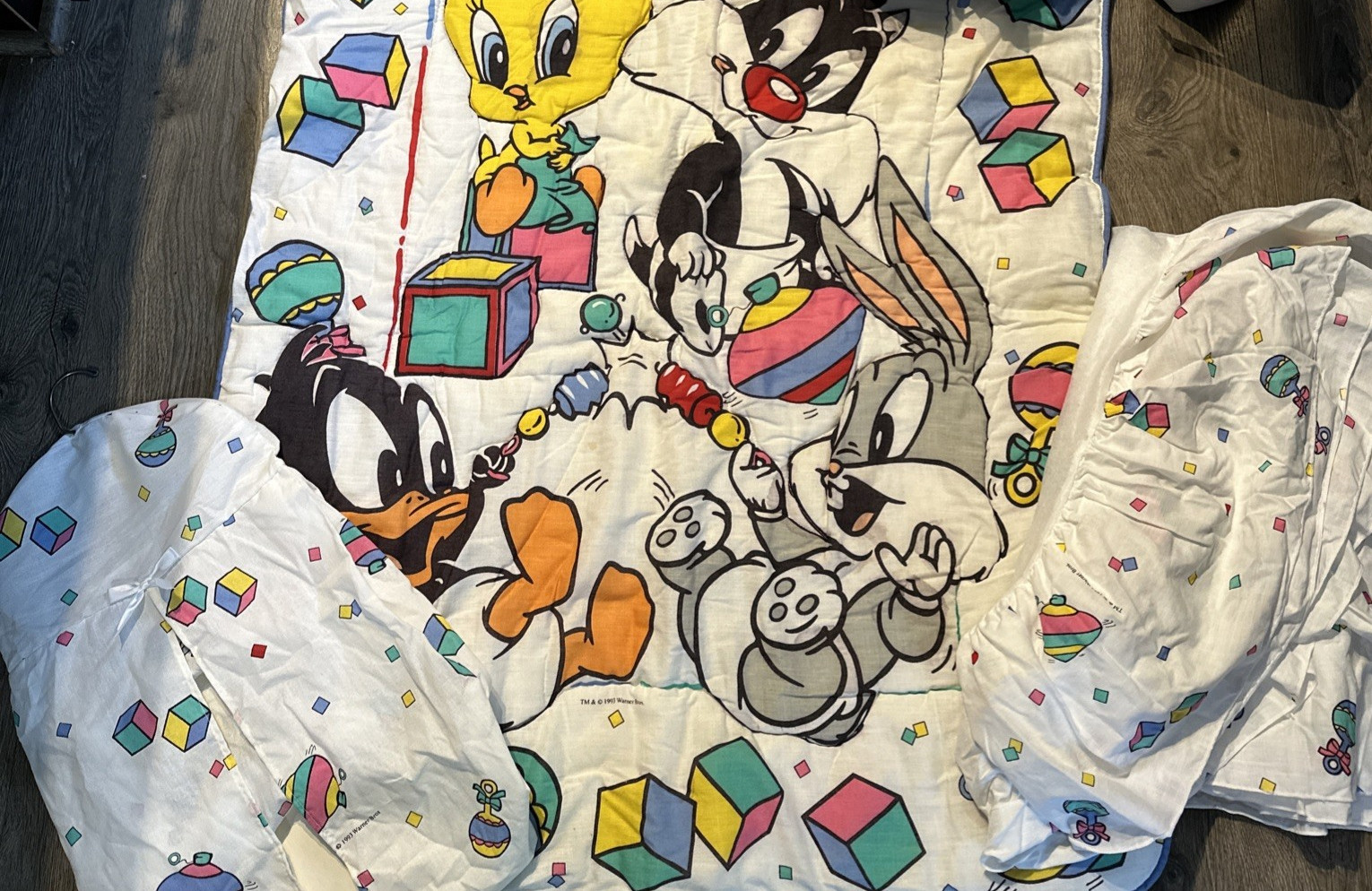 как выглядит Vintage Baby Looney Tunes Gerber Crib Set 5 Pieces Comforter Sheet фото