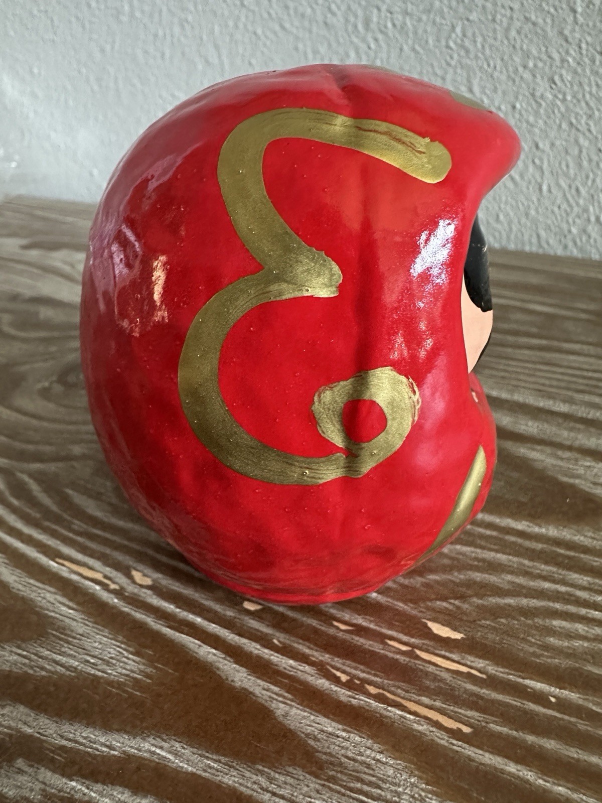 Beautiful Handicraft Japanese Daruma Painted Good Luck Doll 4.33 New