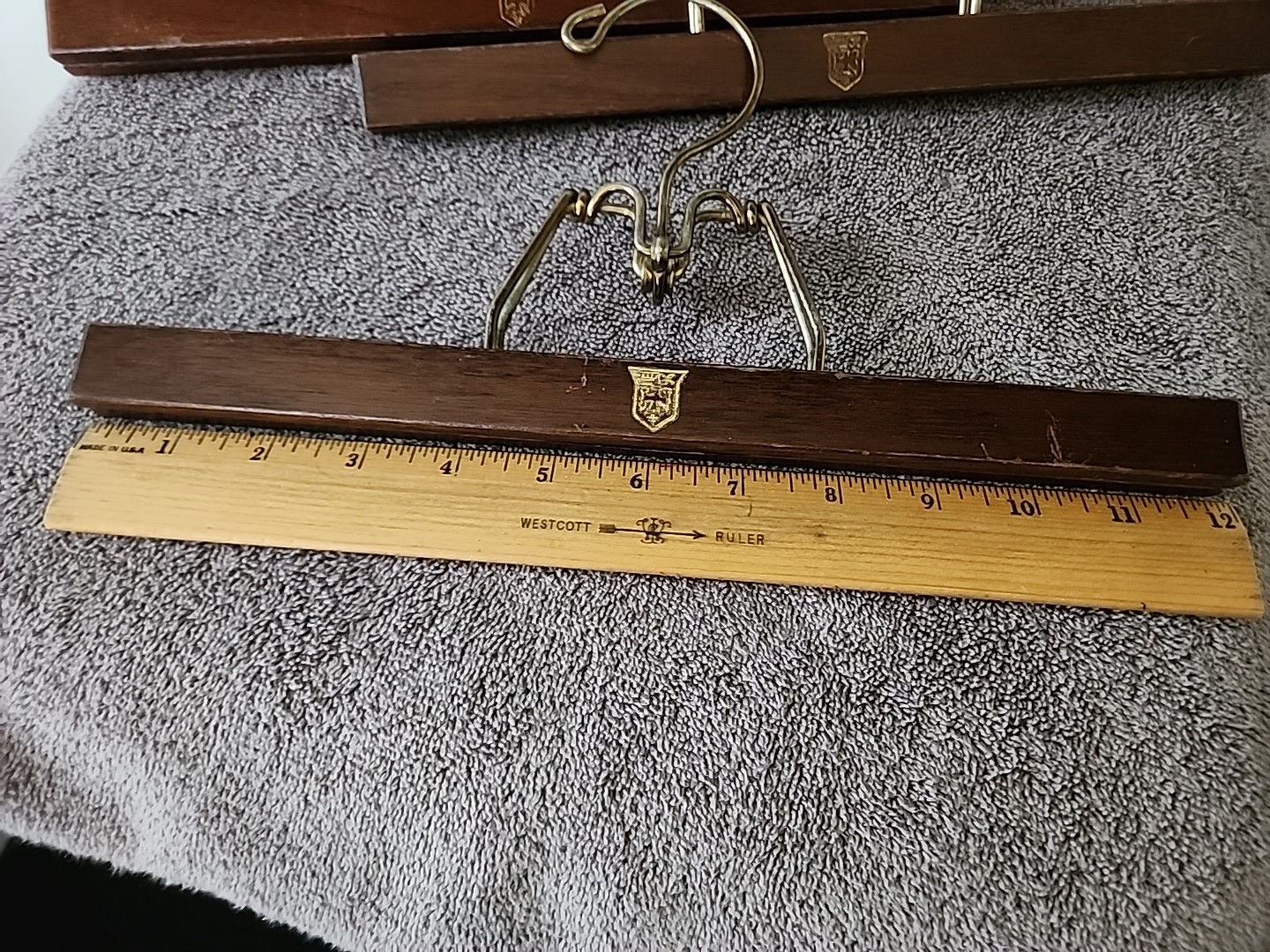 как выглядит Lot of 5 Vtg Royal German 12" Wood Pant Hangers Skirt Trouser Clamp Hangers фото