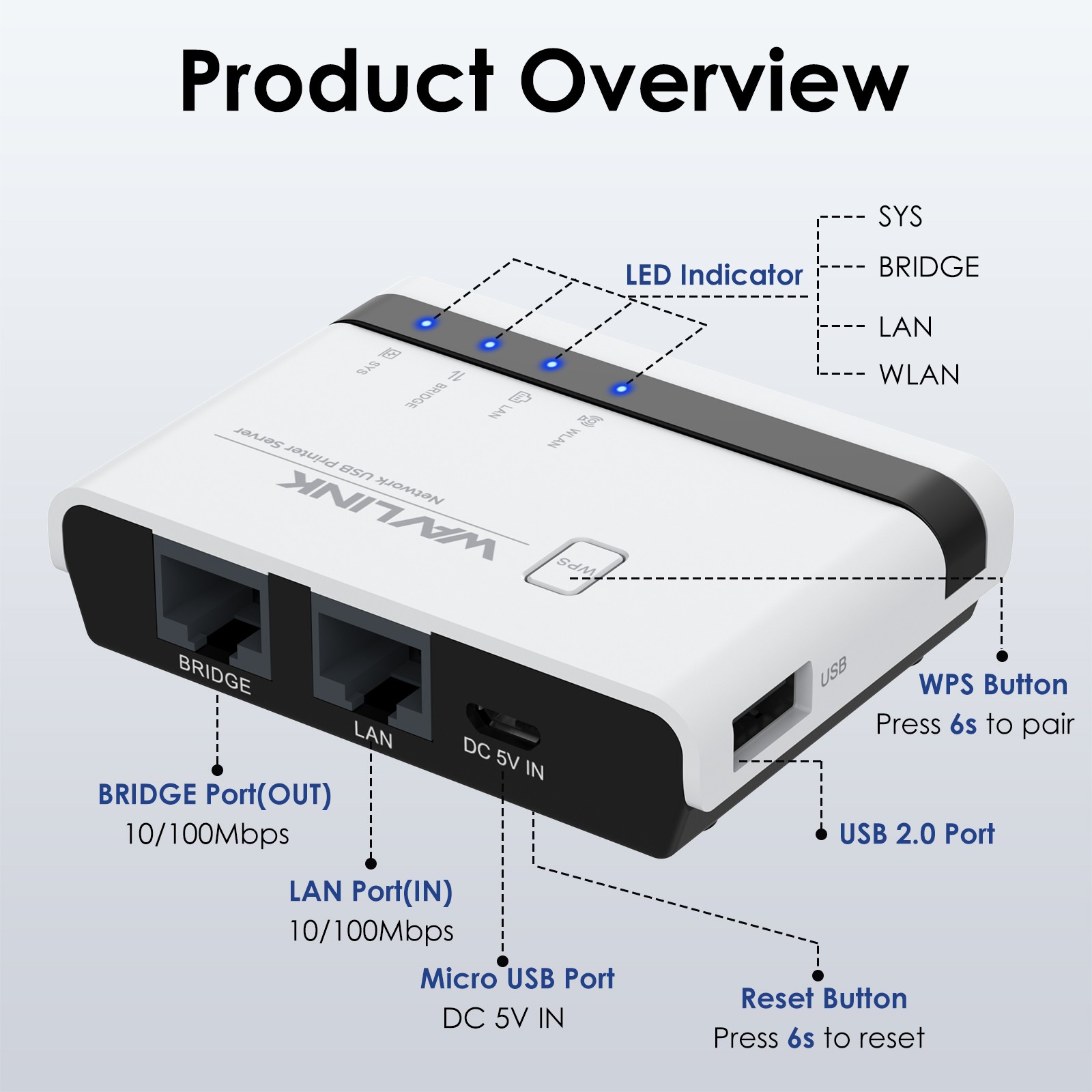 USB 2.0 Network Print Server LAN Print Share Server USB Wireless Print Server