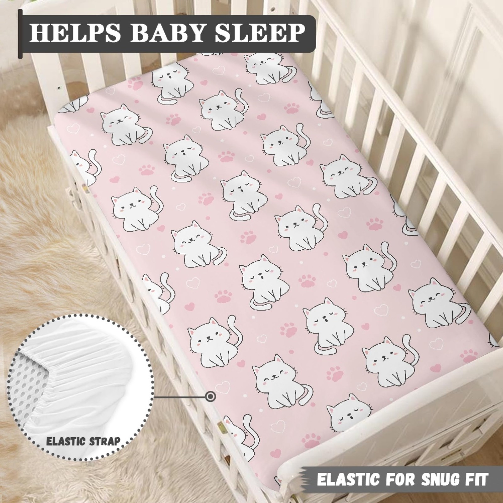 Pink Cats Animal Print Baby Crib Sheet Fits Standard Crib 52x28x8 in