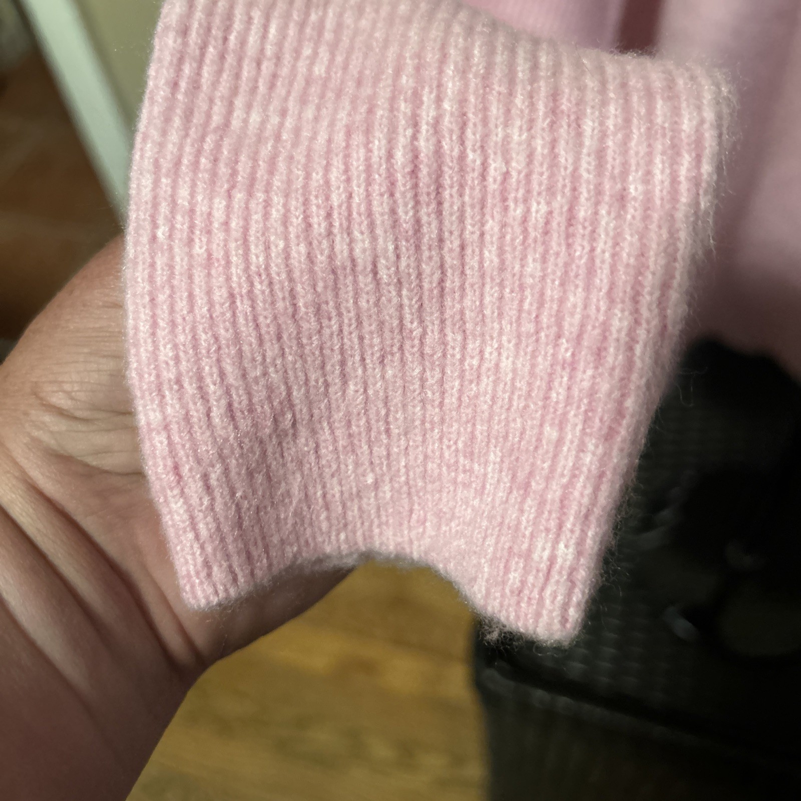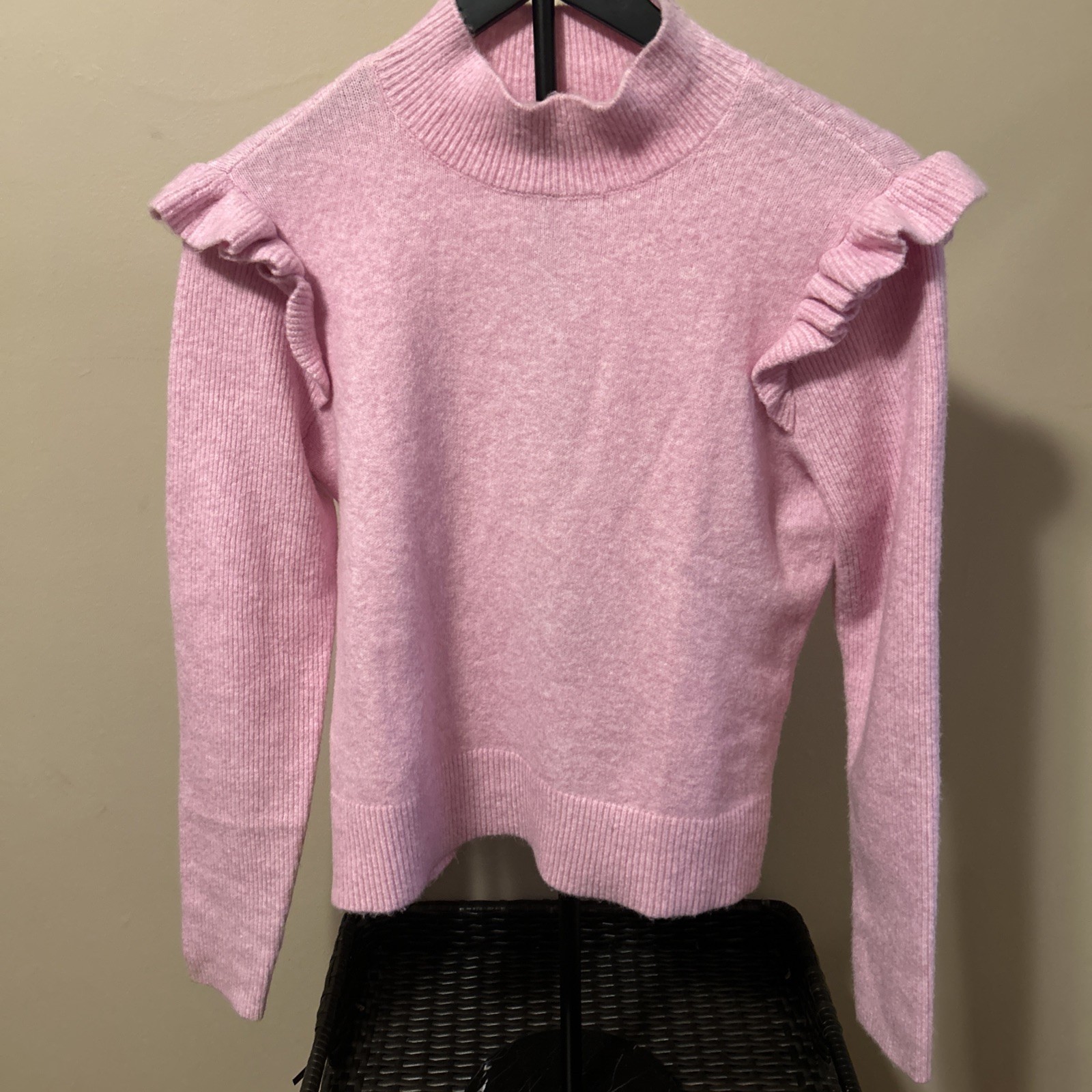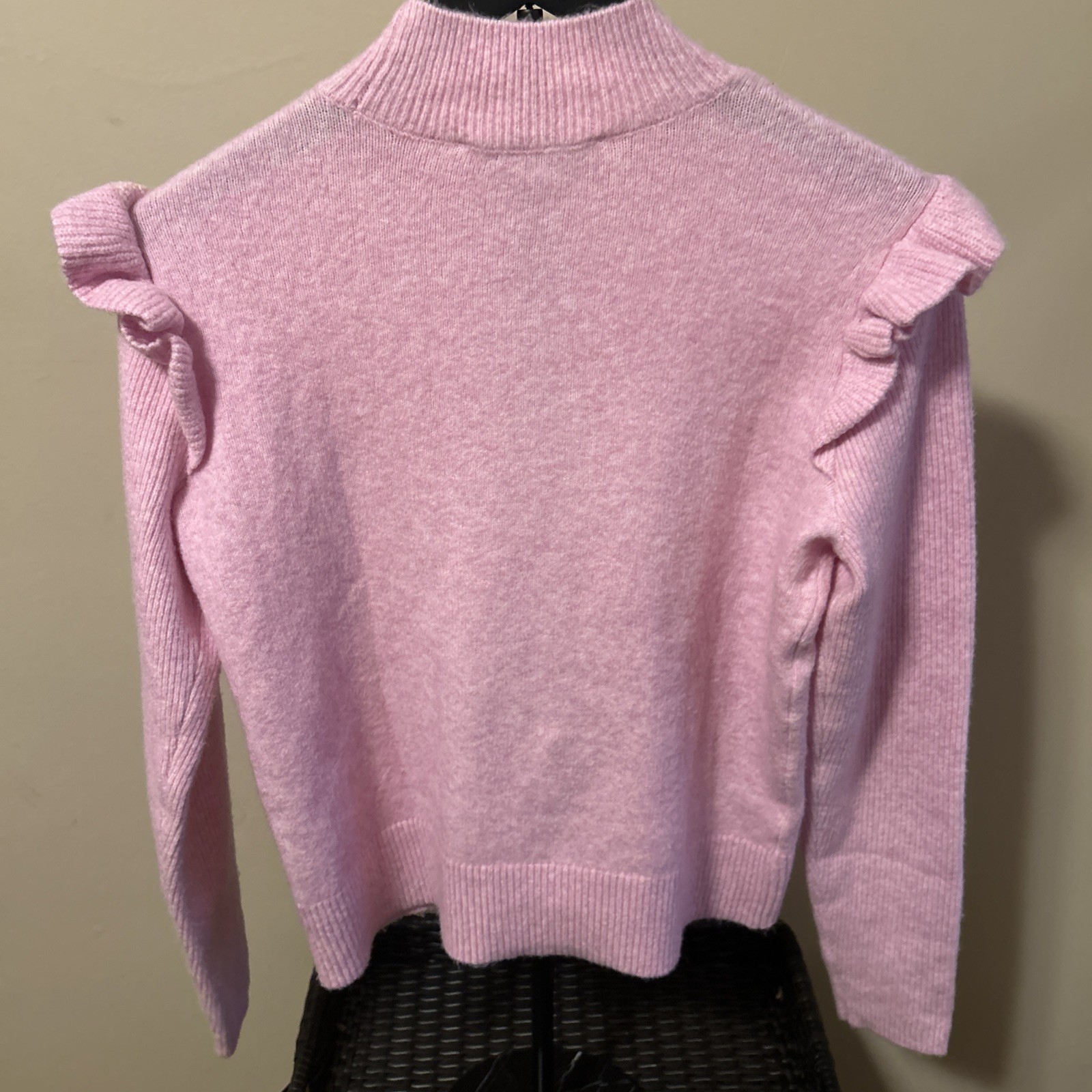 как выглядит Ann Taylor Loft Small Ruffle Sleeve Pink Ribbed Mock Neck Sweater фото