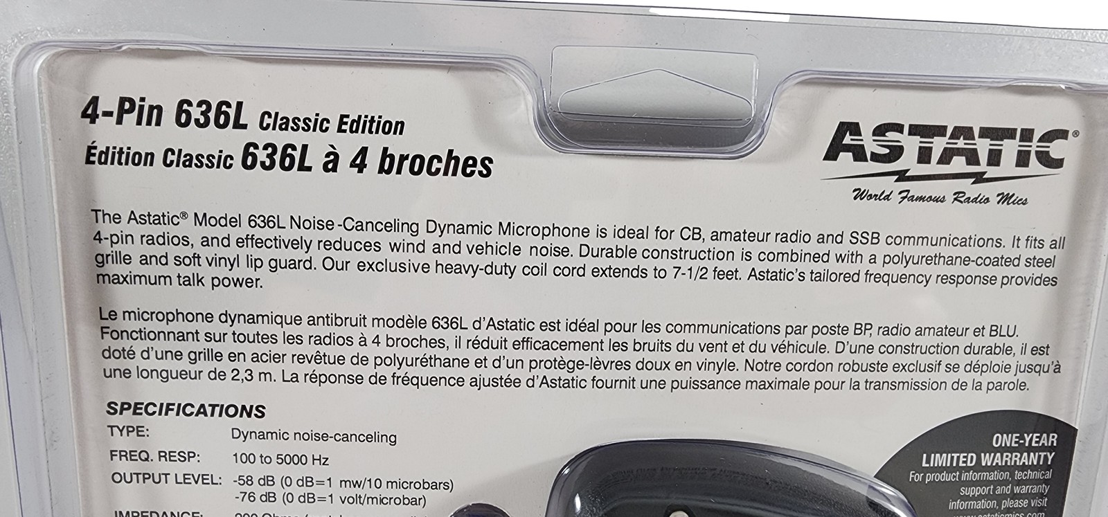 Astatic 302-1001 Black CB Radio Microphone Prewired 4-Pin Cobra / Uniden 636L-4B