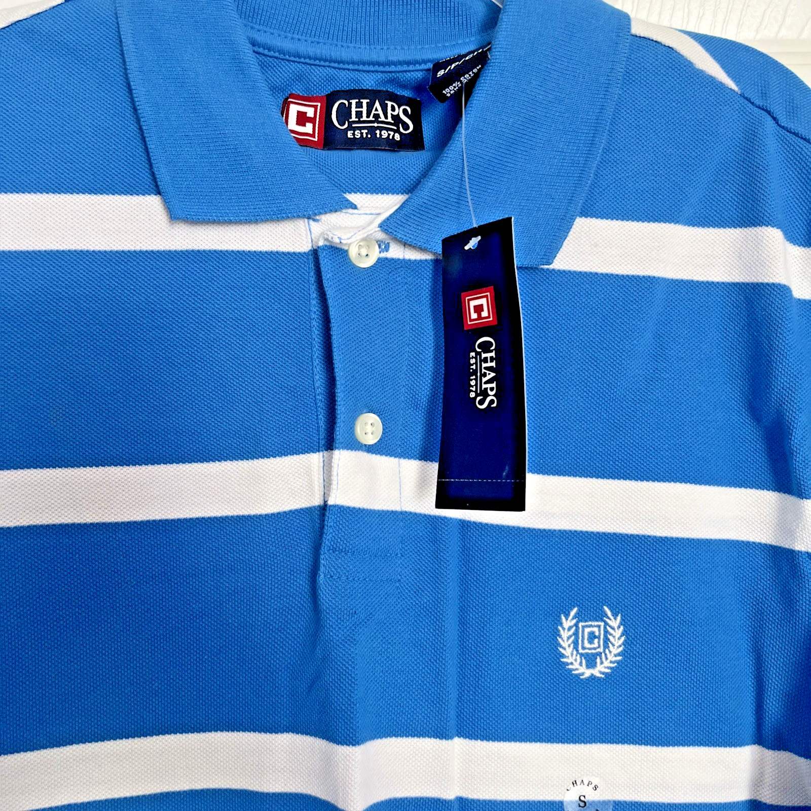 как выглядит Chaps NEW Mens Size SMALL Natural Stretch Stripe Pique Polo Shirt with Tags фото