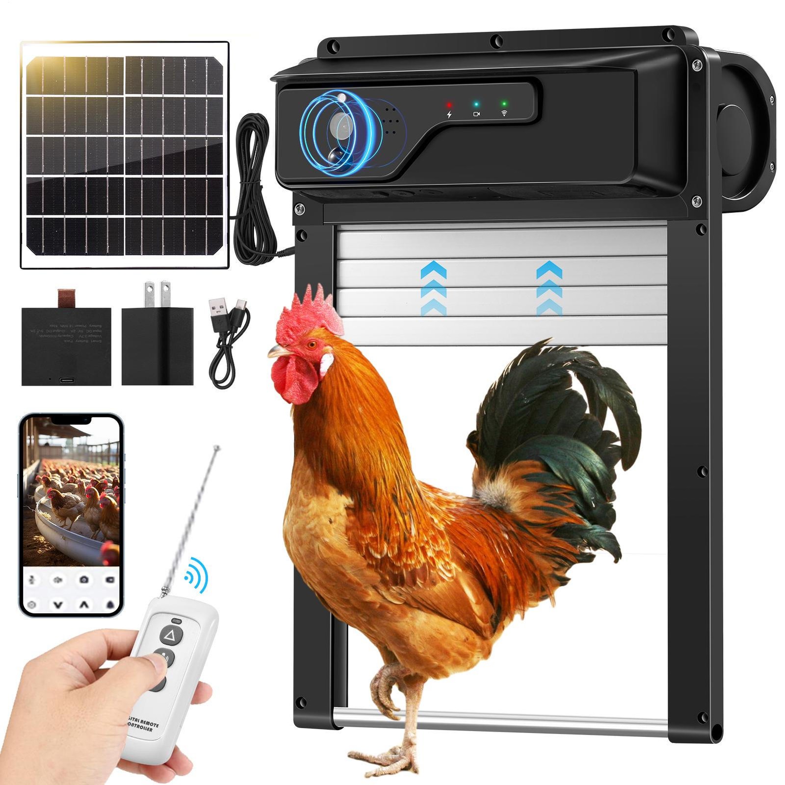 Automatic Chicken Coop Door Solar Powered Poultry Gate w/HD Camera/Remote/Sensor