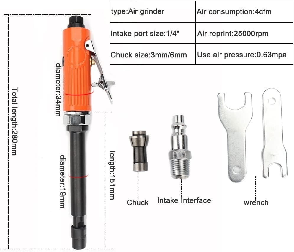 1/4'' 1/8'' Extended Air Die Grinder Pneumatic Grinding Tool