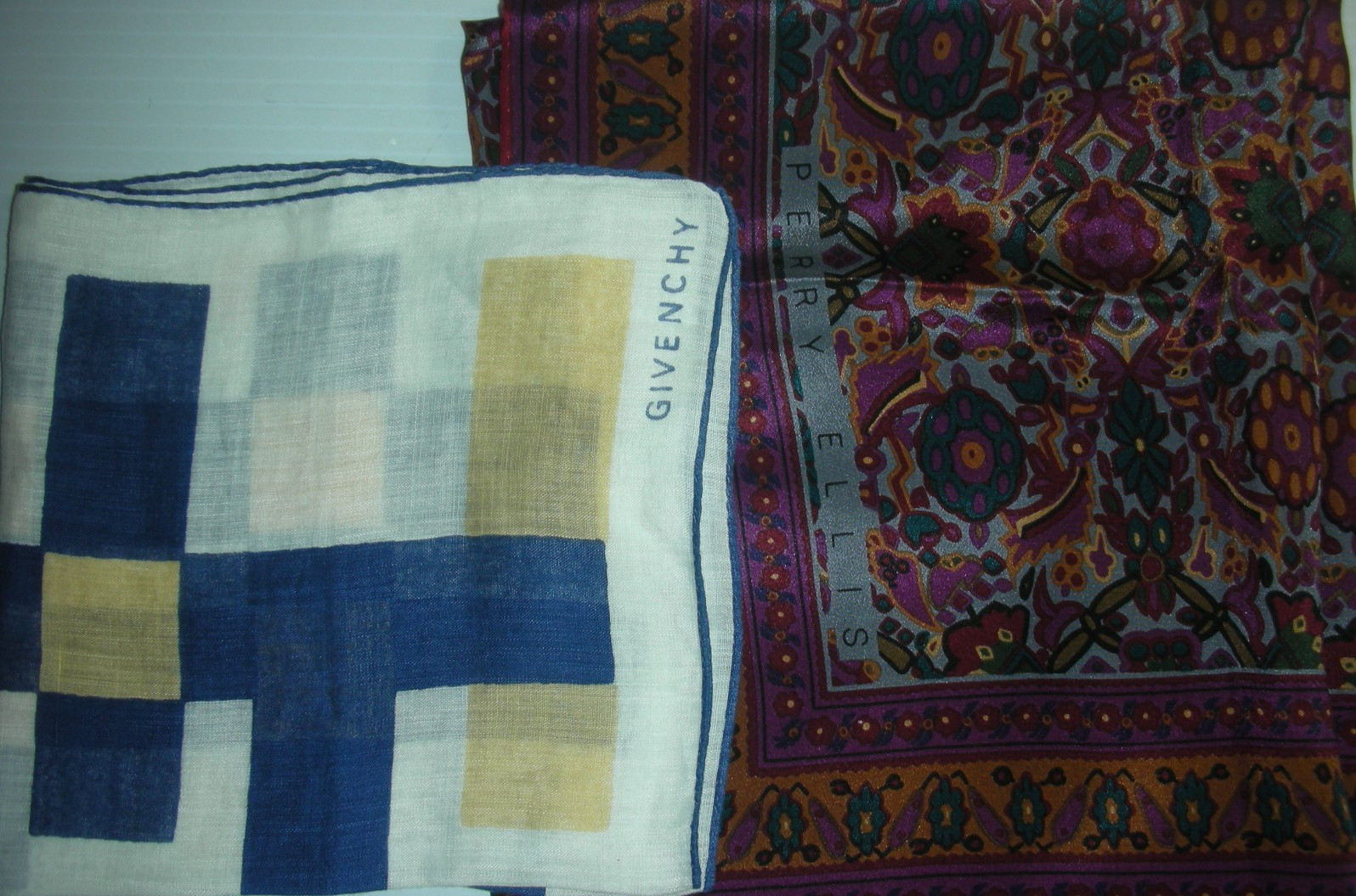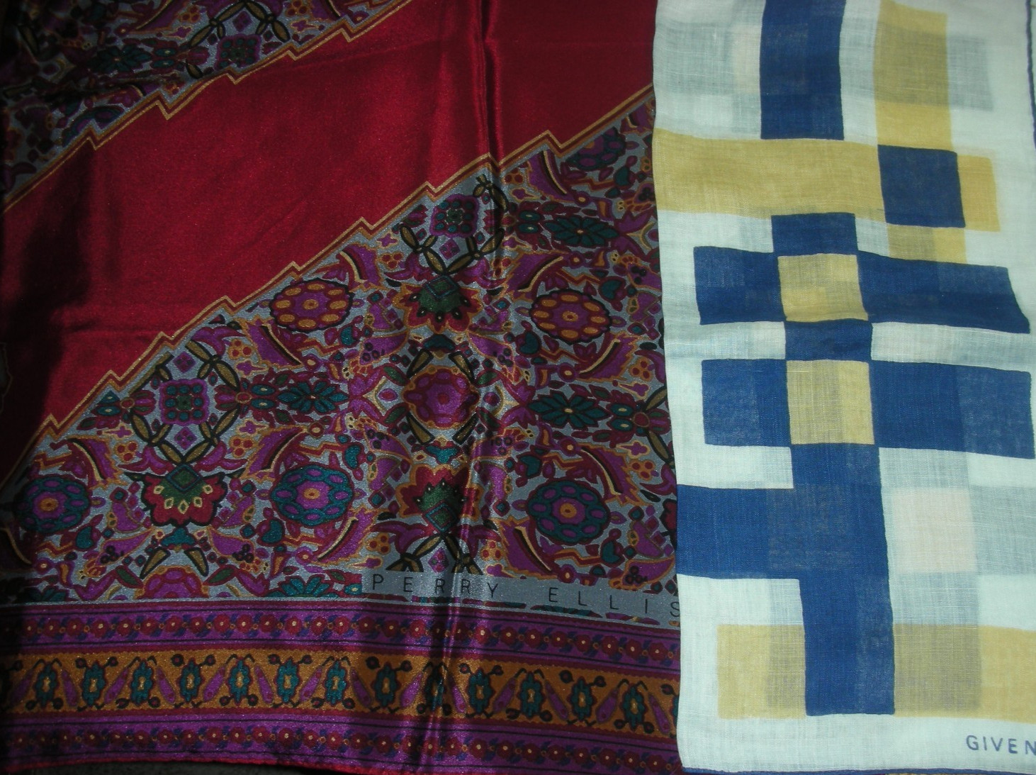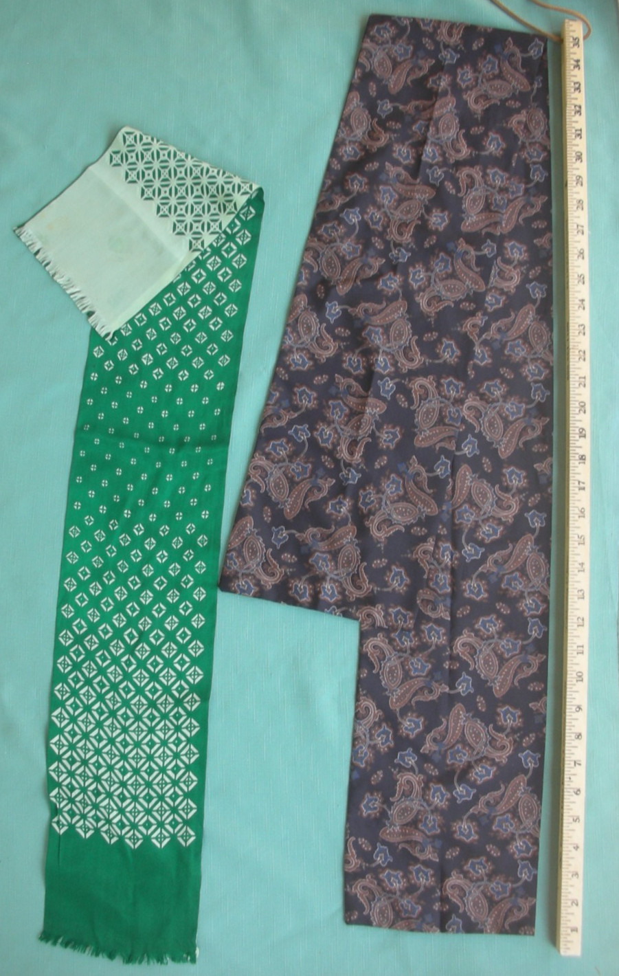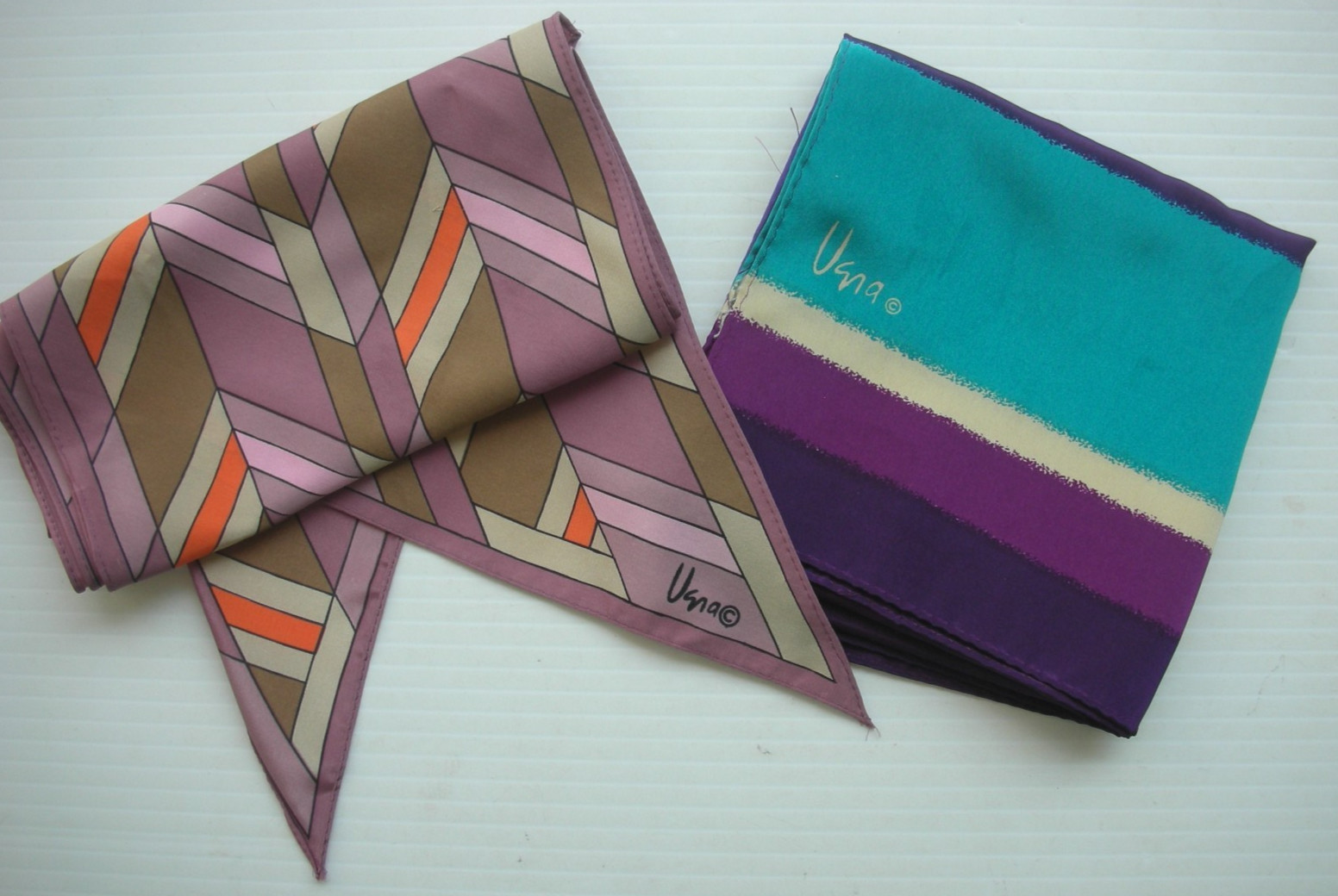 как выглядит 12 VINTAGE SCARF LOT MIXED SILK, POLYESTER, ACETATE, NYLON SOME HAND SEWN/ROLLED фото