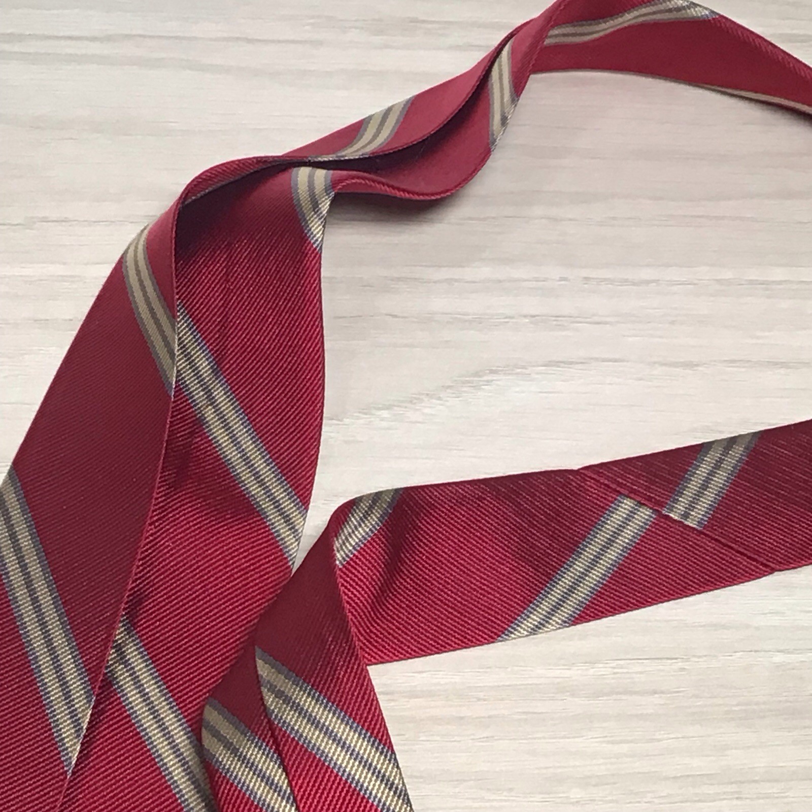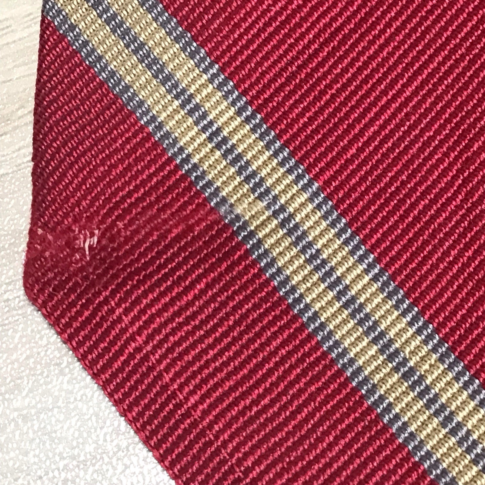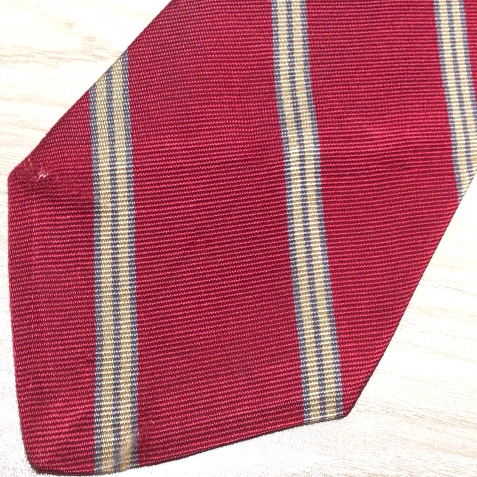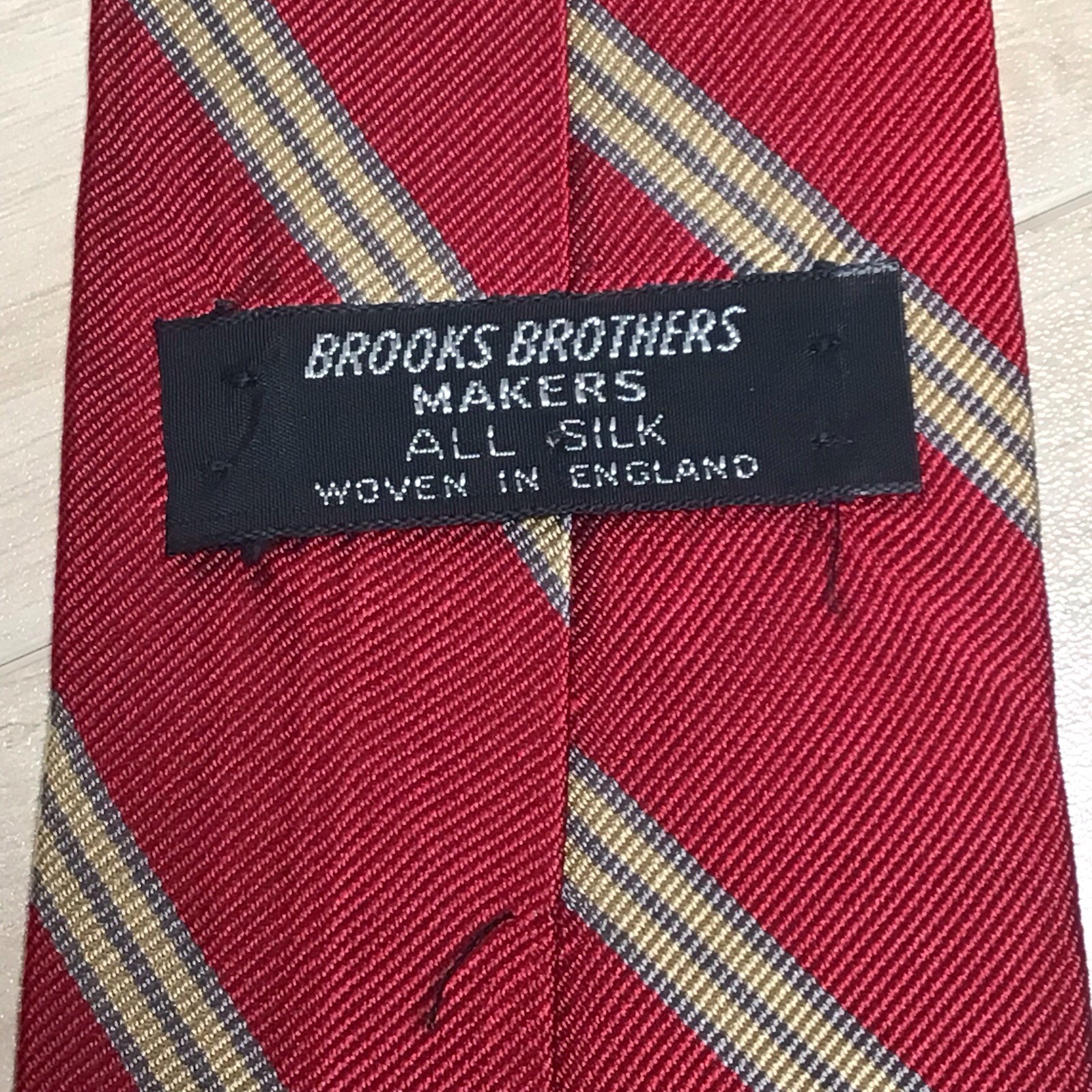 Brooks Brothers Makers Silk Tie England Burgundy Gold Gray Repp Stripe Ivy Trad
