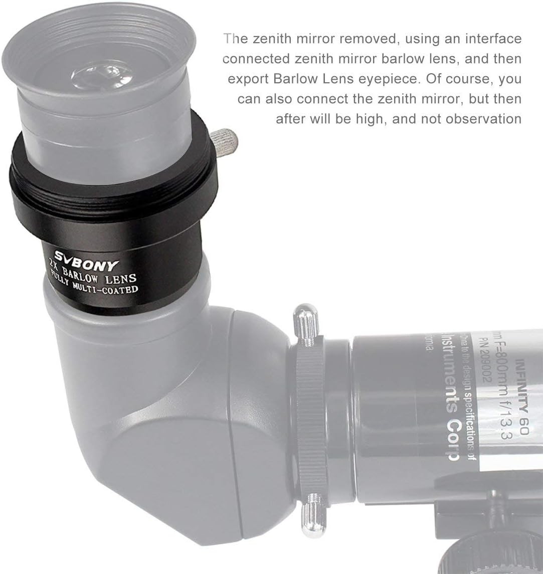 SVBONY Barlow Lens 2X, 1.25 Inch Barlow Lens with Multi Coated Broadband Green F